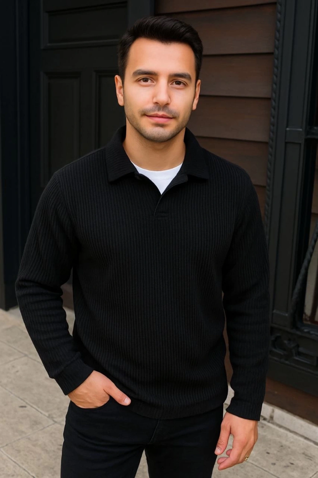 Erkek Fitilli Polar Sweatshirt – Düğmesiz Polo Yaka, Oversize Rahat Kalıp, Kalın Polar Kumaş, Kışlık ve Baharlık Şık Günlük Üst - Kahverengi