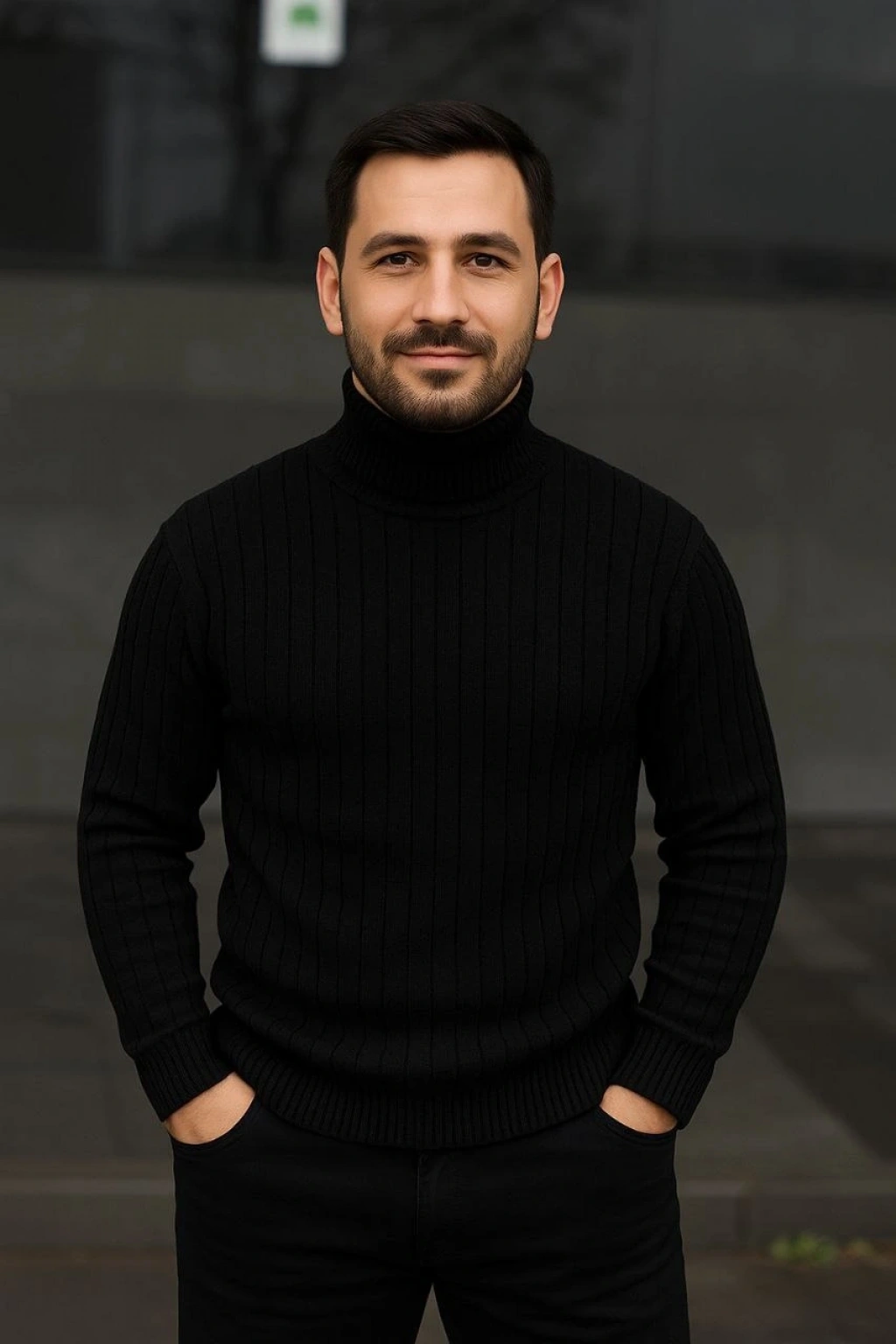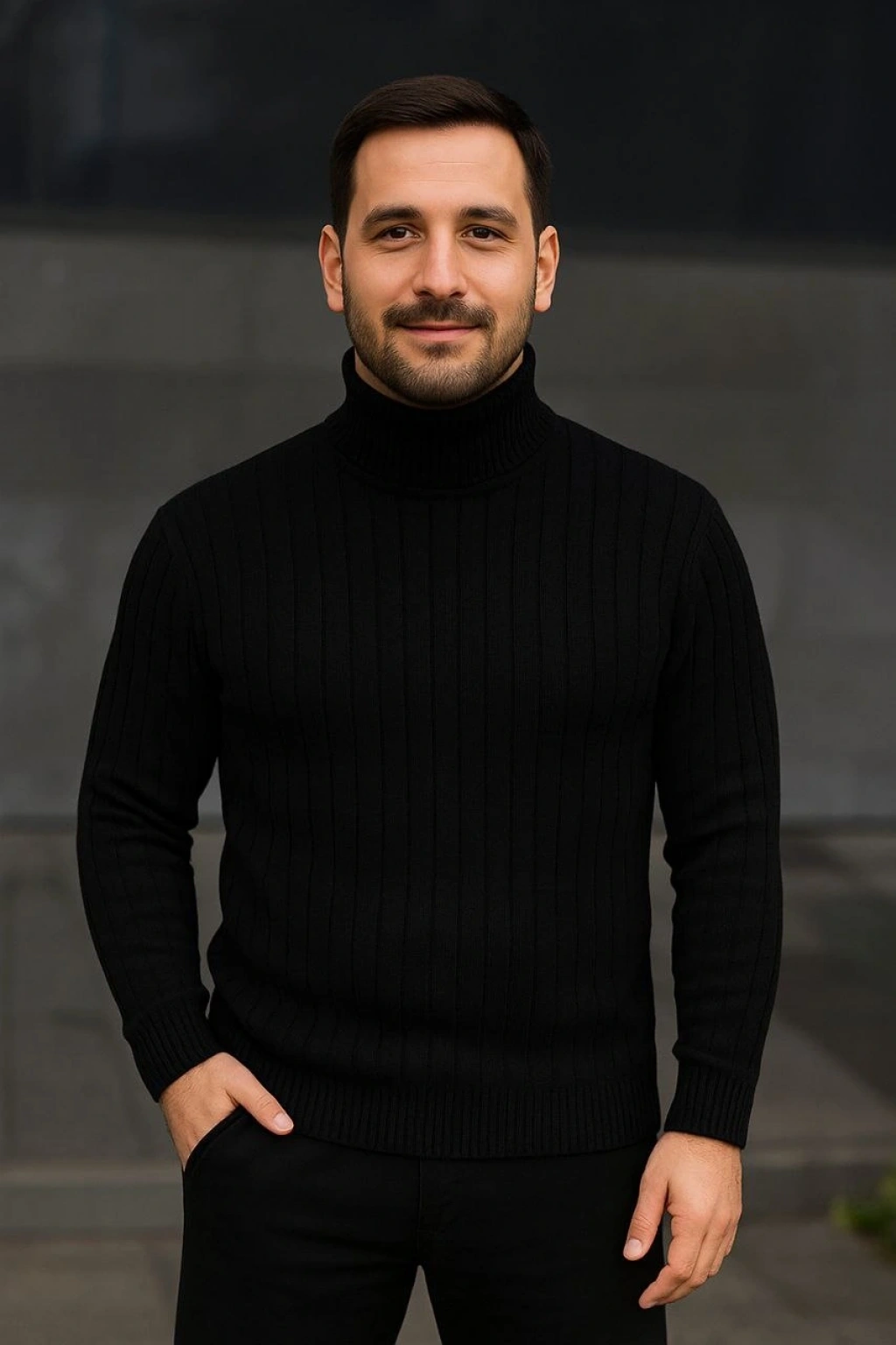 Erkek Yarım Boğaz Triko Kazak yumuşak dokulu Pamuklu ince Dokuma, uzun kollu Rahat Regular kalıp - Siyah