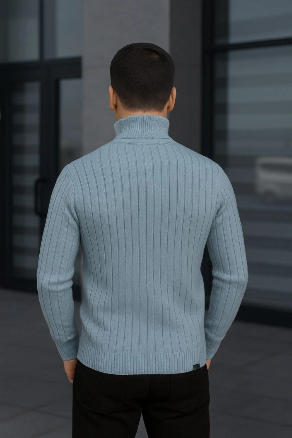 Erkek Fitilli Triko Kazak 3'lÜ Set Bebek Mavisi Bej Siyah Regular Balıkcı Yaka Tam Boğazlı Triko Seti Modeli Kazak