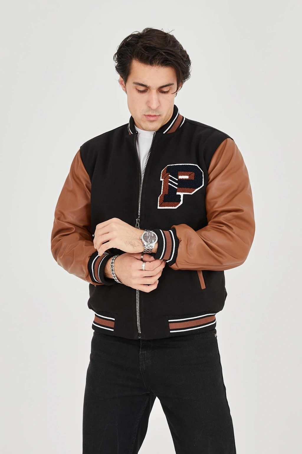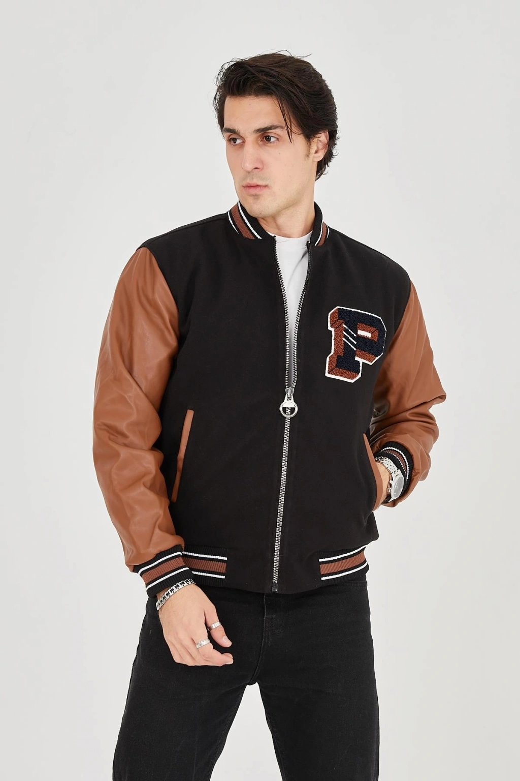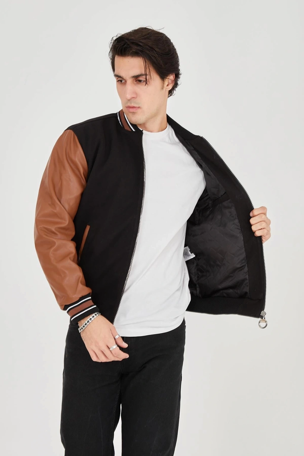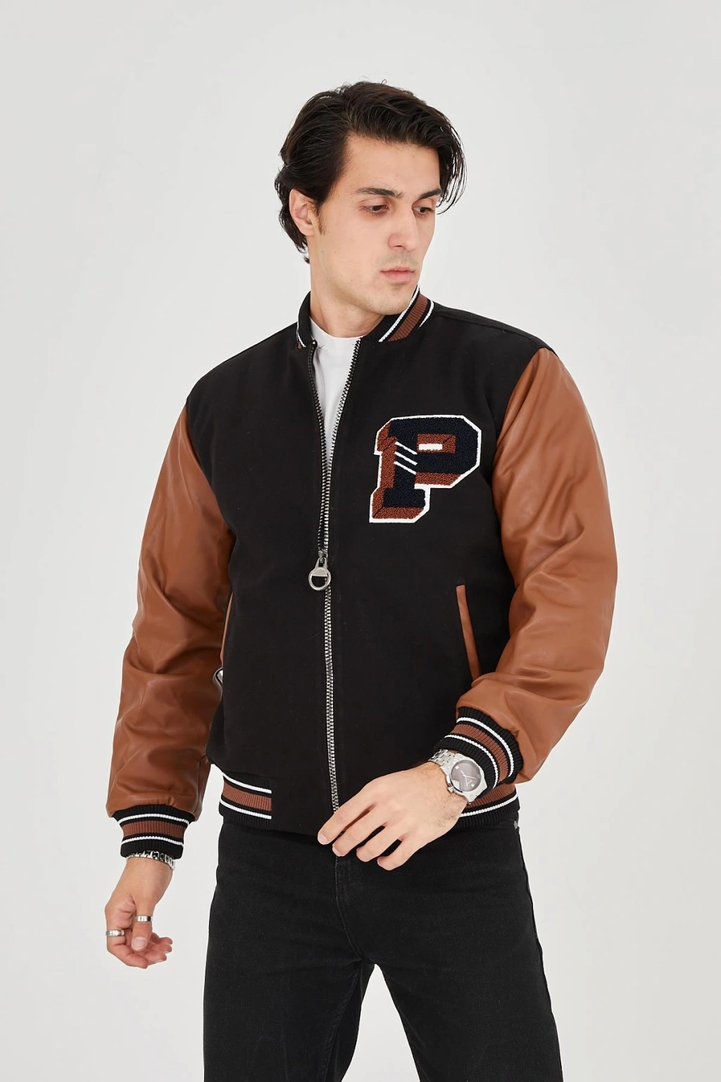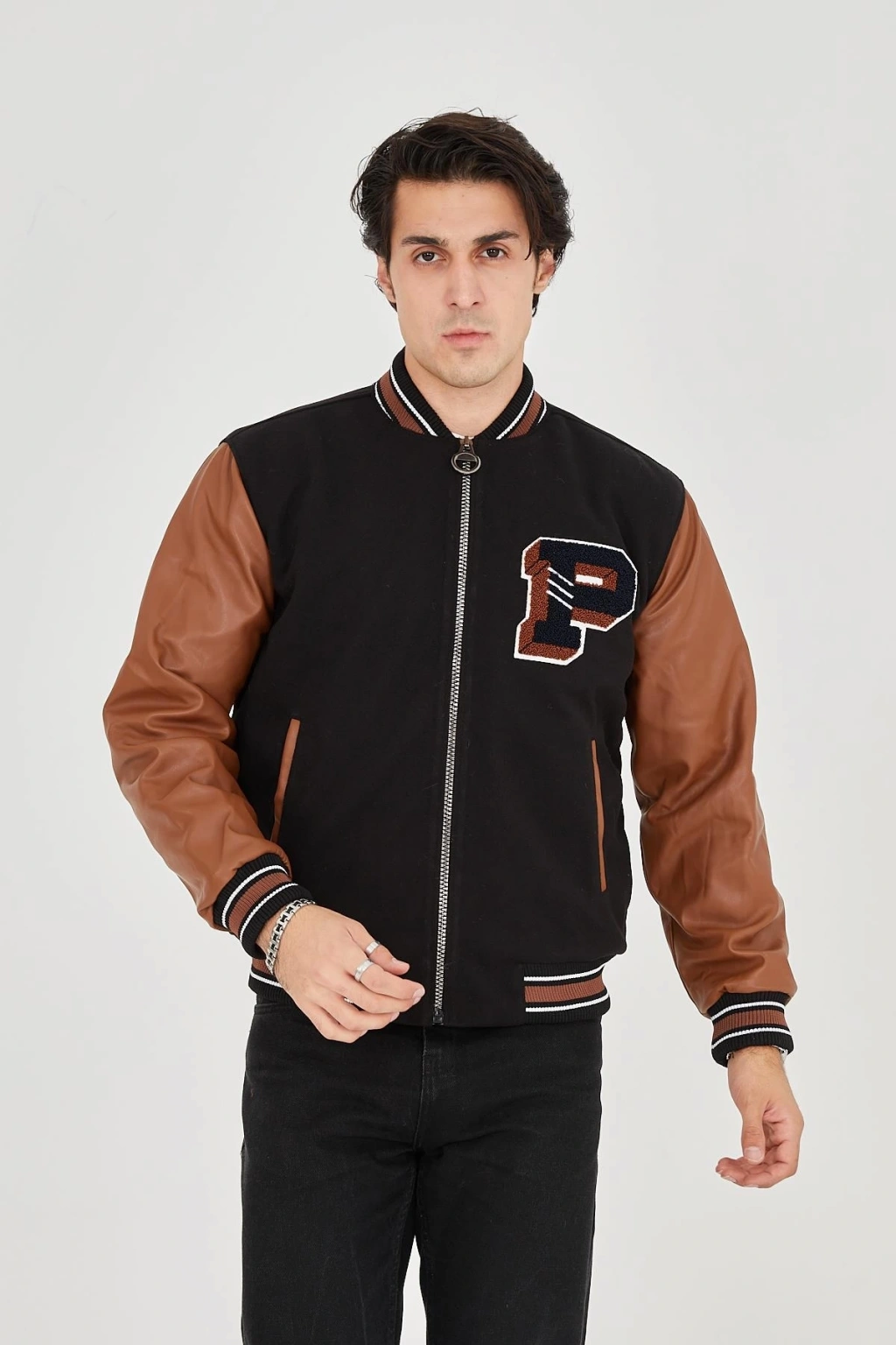 ERKEK SİYAH BOMBER MONT – FERMUARLI, CEPLİ, KAPİTONE ASTARLI, GÖĞÜS BASKILI TASARIM GÜNLÜK RAHAT CEKET - SİYAH