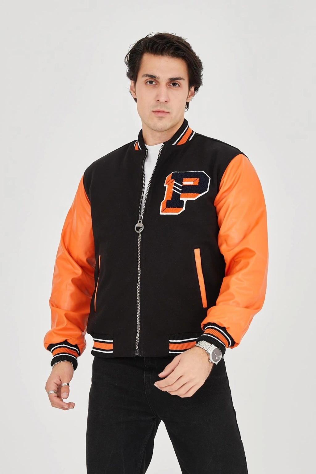 Siyah Parliament Bomber Mont – 46 Numara Detaylı, Fermuarlı, Cepli, Uzun Kollu, Spor ve Günlük Giyim İçin Rahat Unisex Mont - Siyah