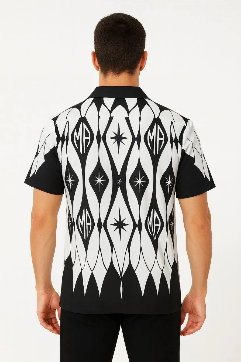 Erkek Waffle Dokuma Açık Yakalı Düğmeli Regular Kalıp 2’li Gömlek Seti - Siyah & Beyaz