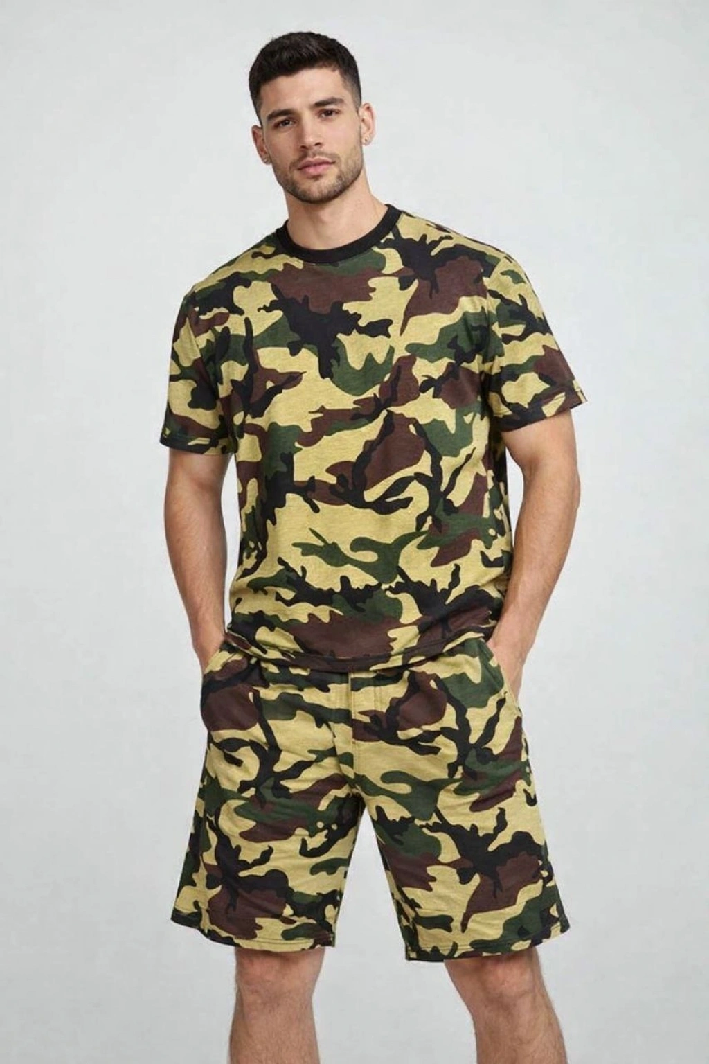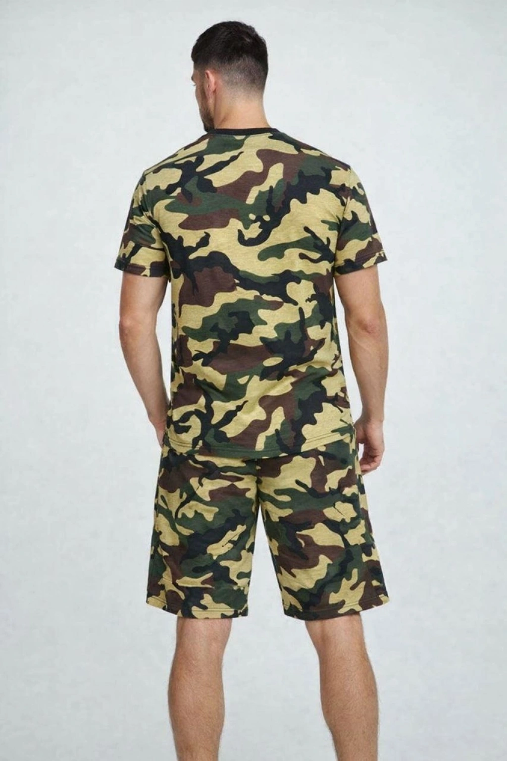 Erkek Kamuflaj Desenli Tişört Şort Takım – Regular Fit Günlük Spor 2’li Yazlık Kombin - Kamuflaj