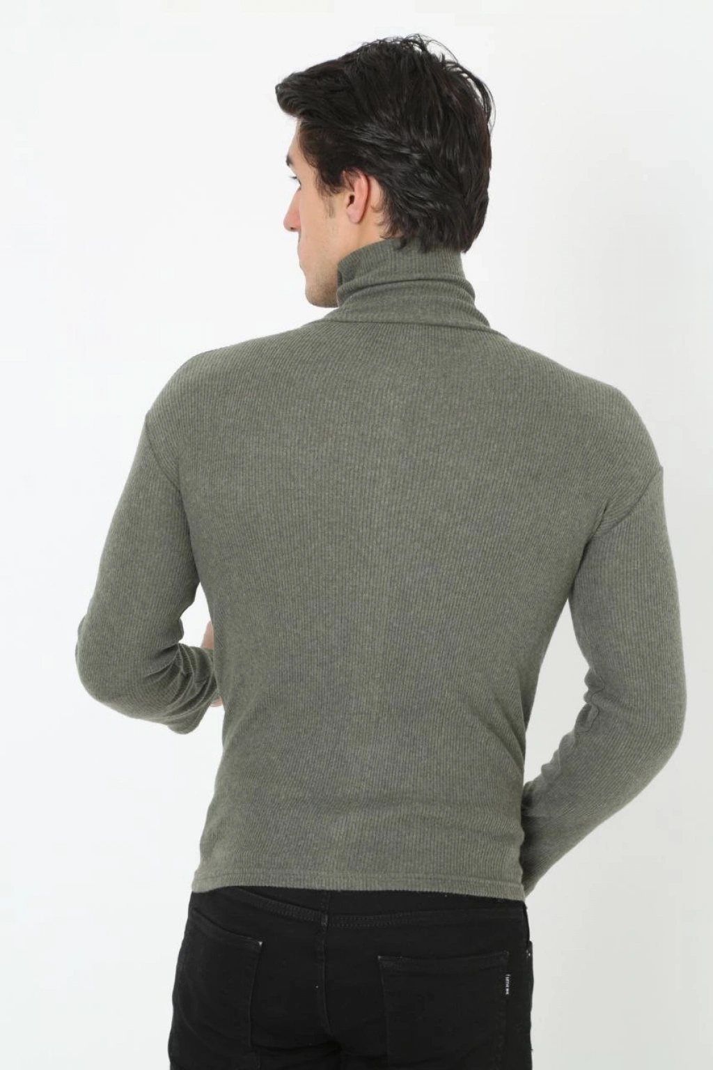 Erkek Kaşkorse Boğazlı Full Likralı Fitilli Body Kazak - Haki