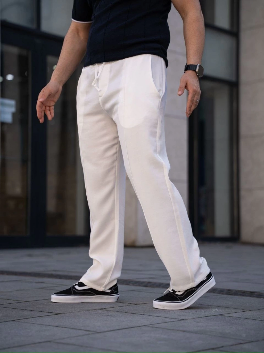 Erkek Cizgili Dokuma Krep Jogger Buggy Pantalon Rahat kalıp - Beyaz