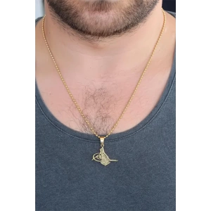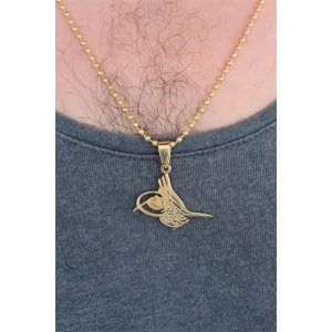 Gold Renk Metal Osmanlı Tuğra Figürlü Erkek Kolye