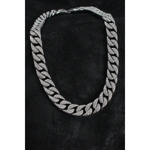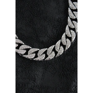 Pirinç Zirkon Taşlı Cuba Gurmet Model Gümüş Renk Erkek Kolye