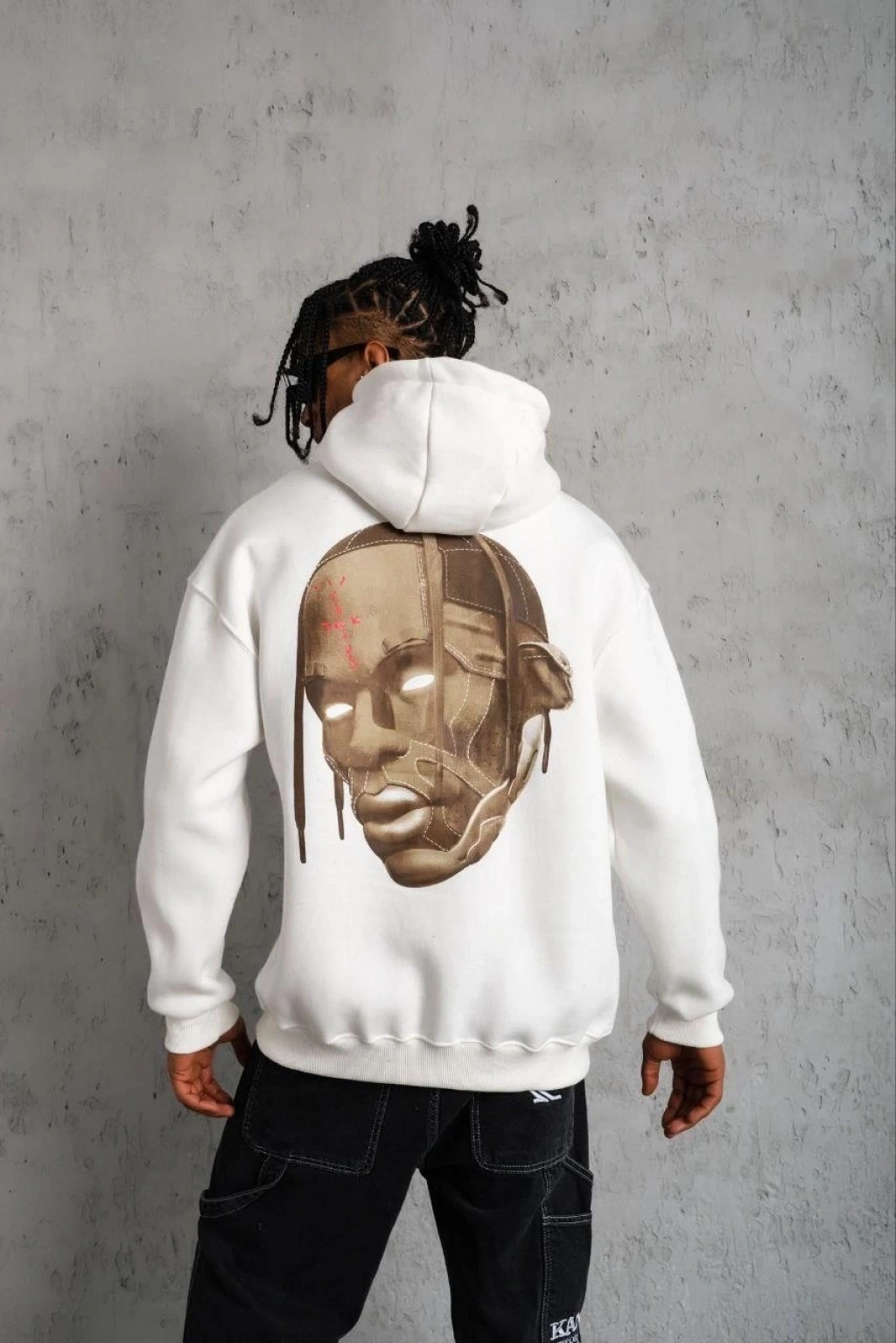 Erkek Nihilist Penguen Temalı Oversize Kapüşonlu Sweatshirt - Beyaz
