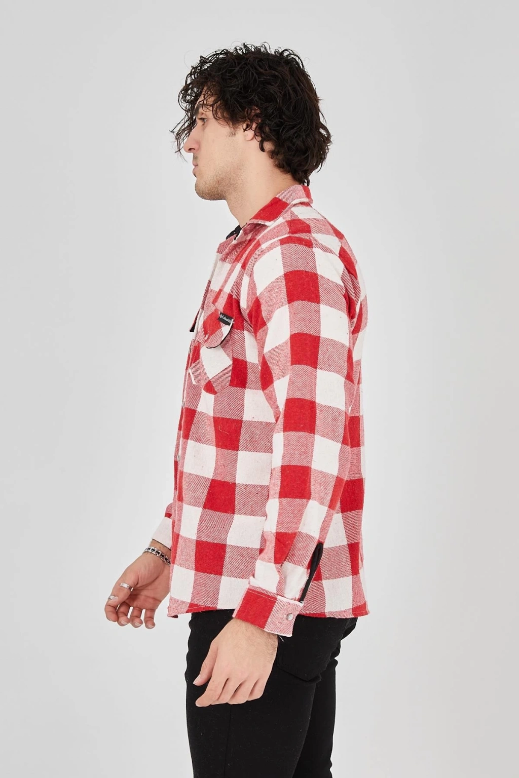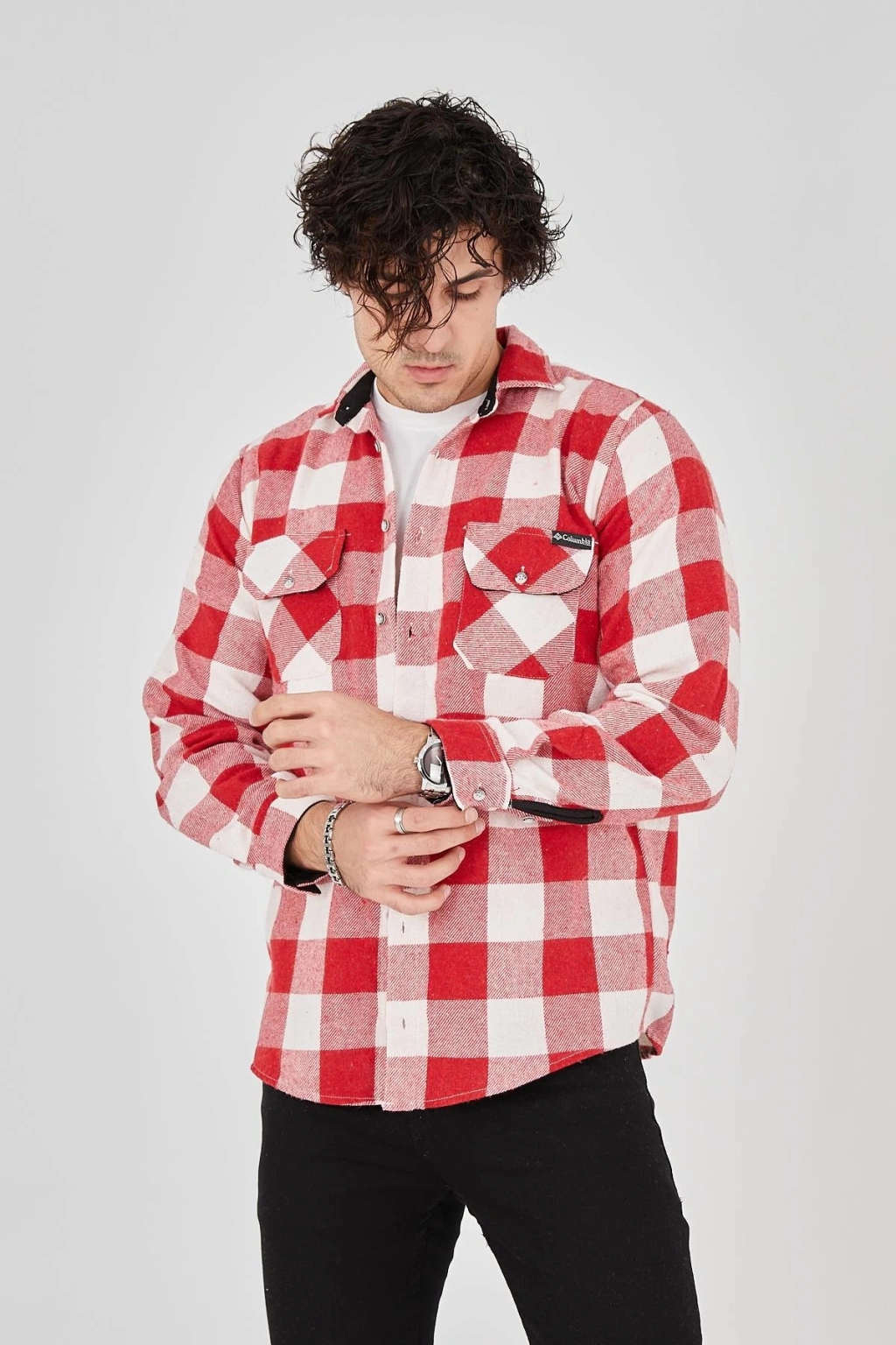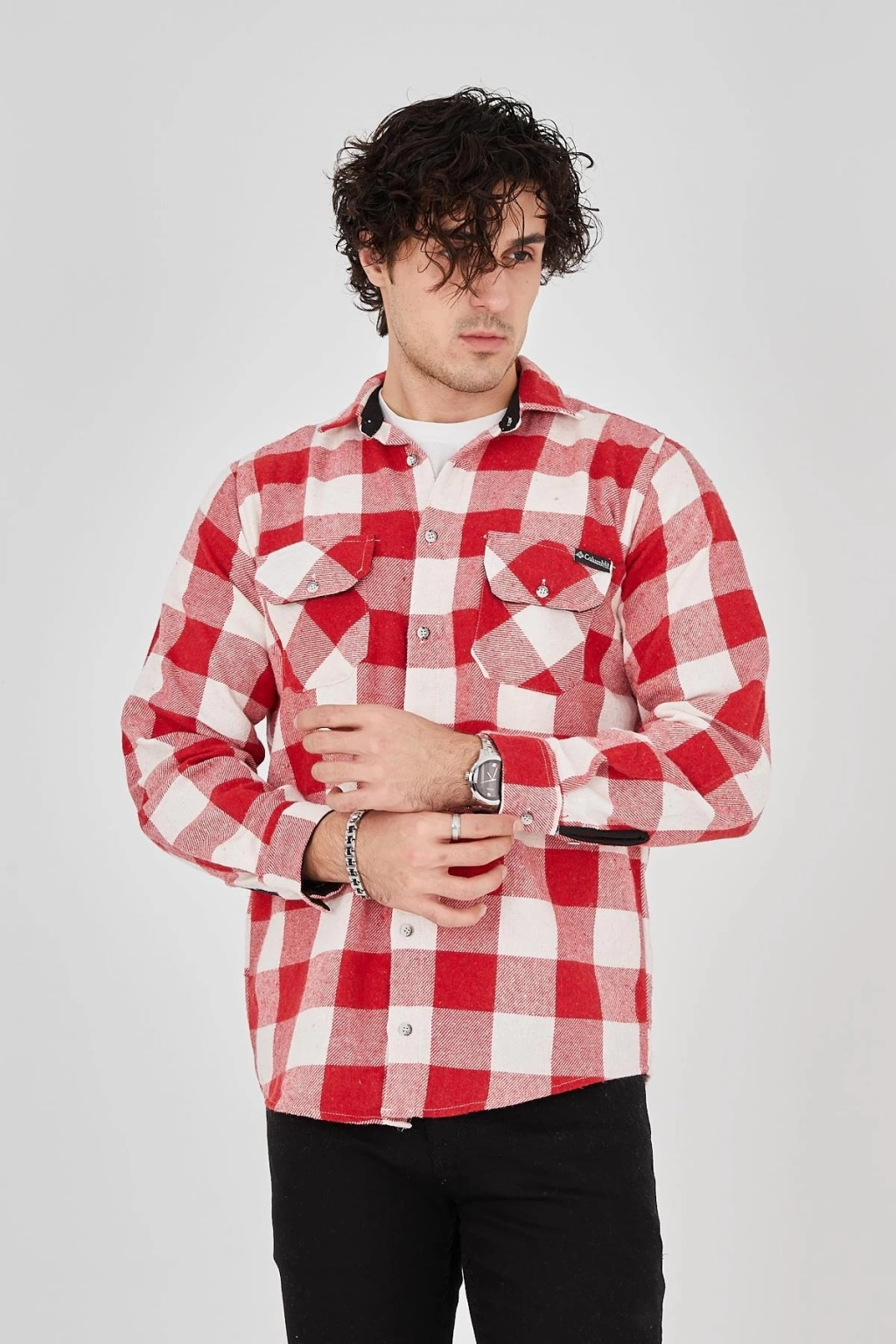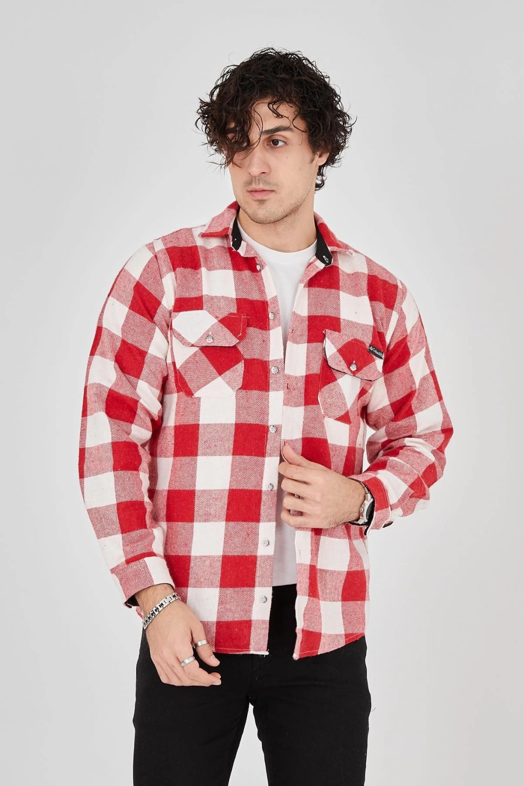 Erkek Oduncu Gömlek – Uzun Kollu, Şardonlu Kumaş, Kareli Desen, Regular Fit, Manşetli, Çift Cepli, Rahat Günlük Bahar & Kış Stil - Siyah