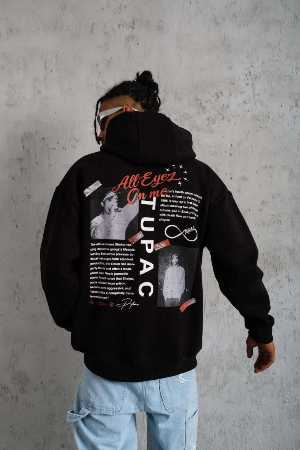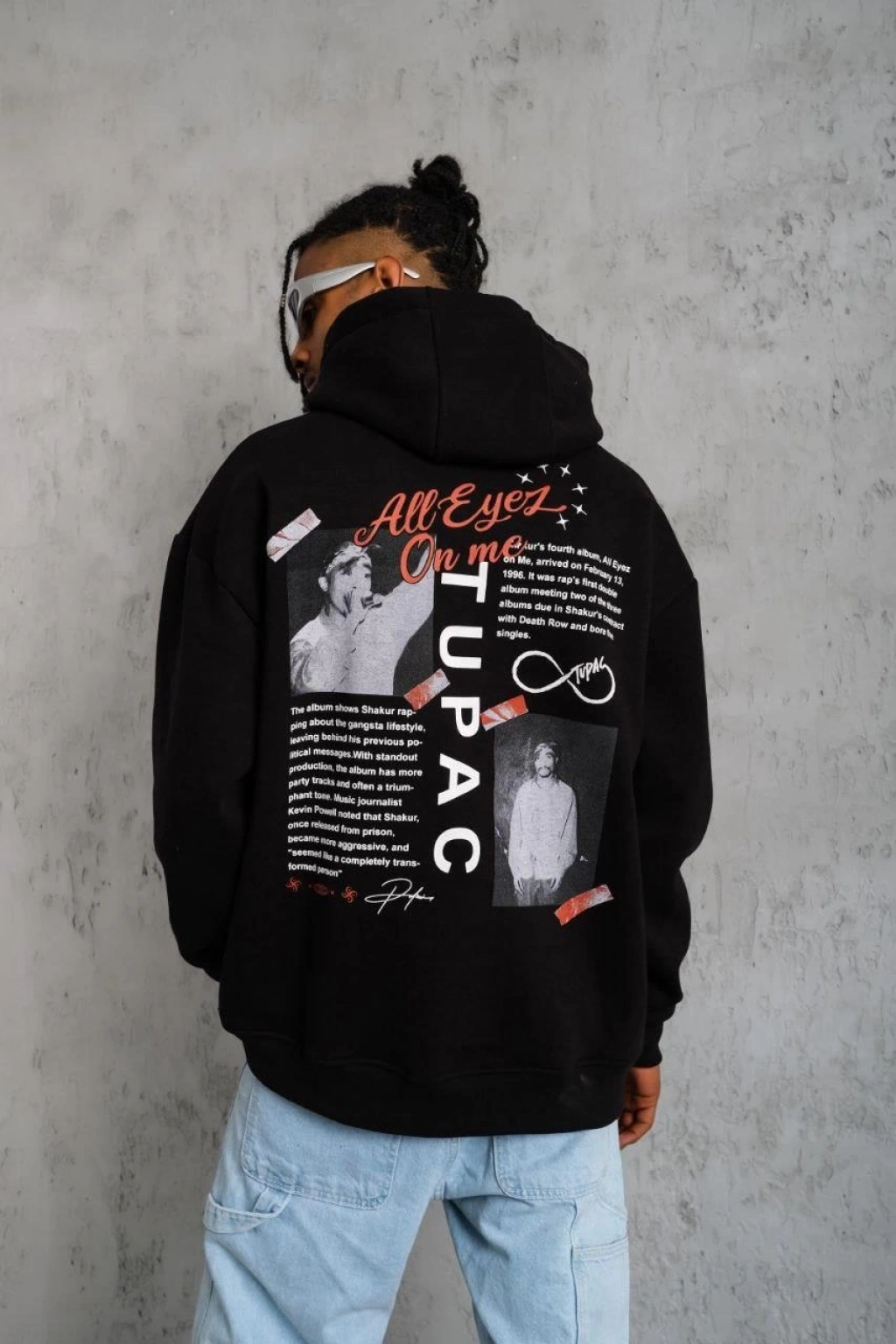 Siyah Oversize Hoodie - Sırt Baskılı "Survivor Penguin" Temalı, Felsefi Yazılı Kapüşonlu Sweatshirt - Beyaz