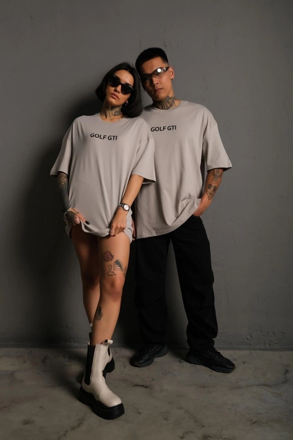 Erkek Asit Yıkamalı Oversize Tişört ön ve Arkası Baskılı %100 Pamuk Street Style T-Shirt - Beyaz