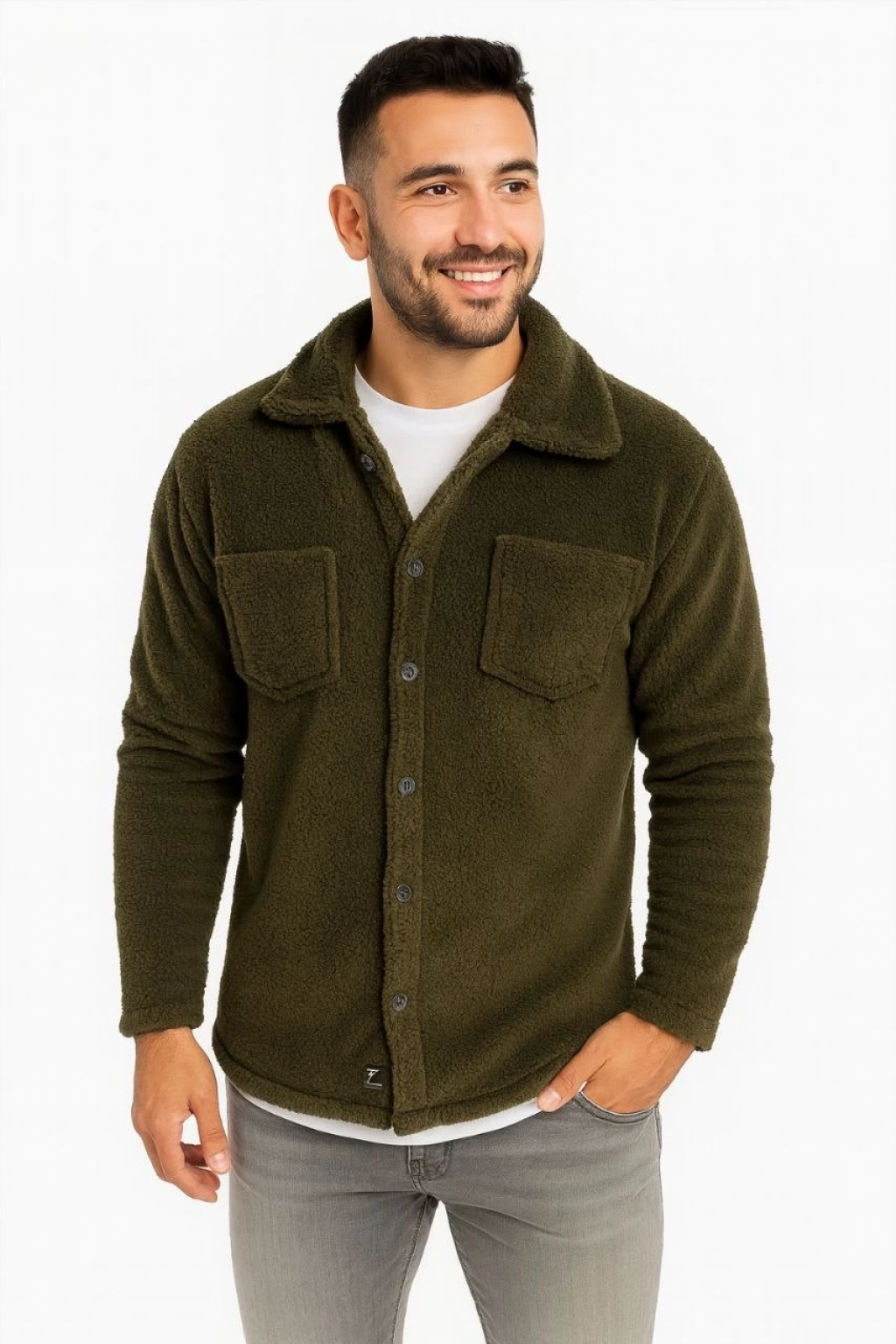 Erkek Pelüş Polar Hırka Gömlek – Yakalı, İlik Düğmeli, Göğüs Cepli, Yumuşak Dokulu Kışlık Regular Fit Rahat Günlük Model - Çimen Yeşili
