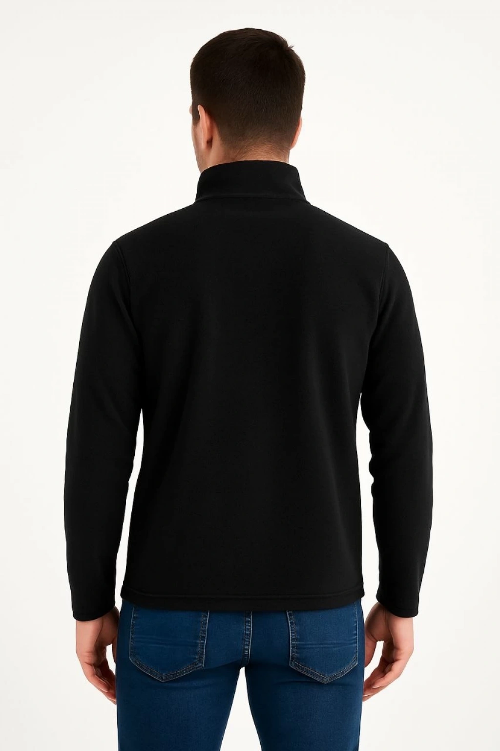 Erkek Yarım Fermuarlı Desenli Polar Sweat Yakalı, Uzun Kollu, Oversize Rahat Kalıp - Siyah