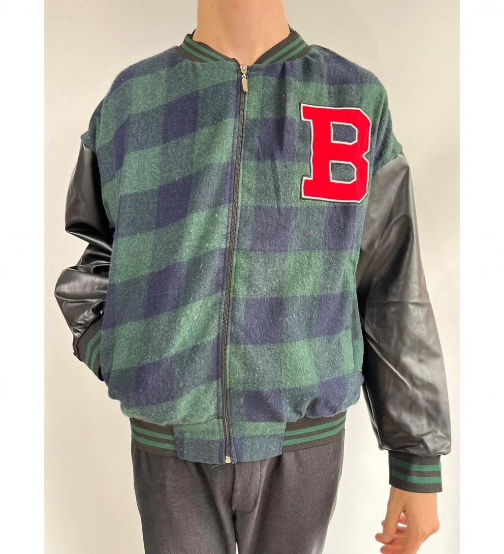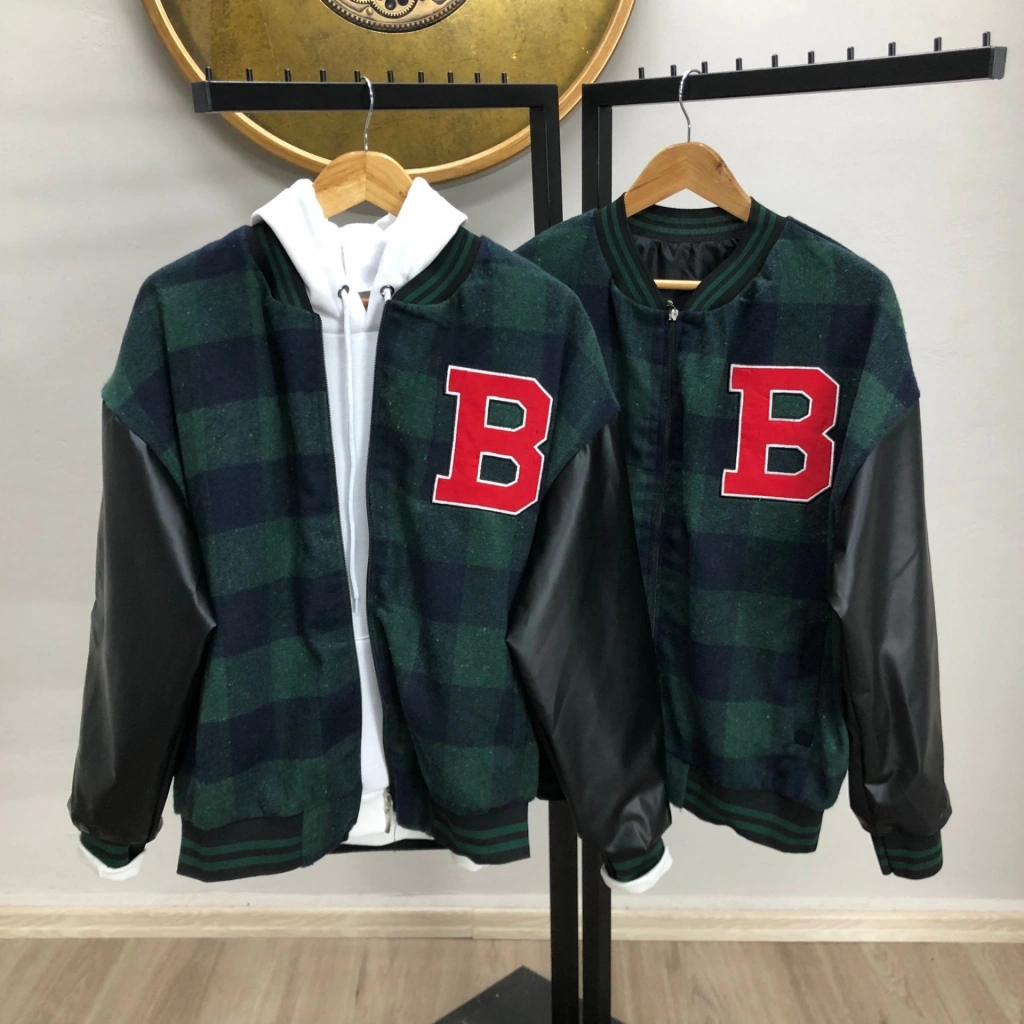 Erkek Siyah Bomber Kolej Mont – B Harfi ve Kemik Baskılı, Su İtici Kumaş, Kapitone Astarlı Fermuarlı Ceket - Siyah
