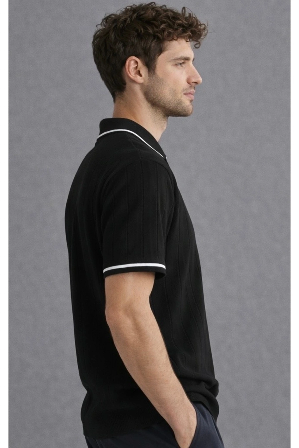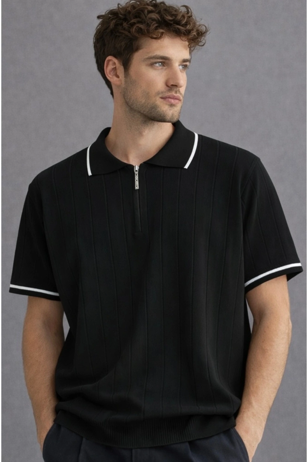 erkek premium kalite rahat kalıp pamuklu yarım fermuarlı triko tişört / t-shirt