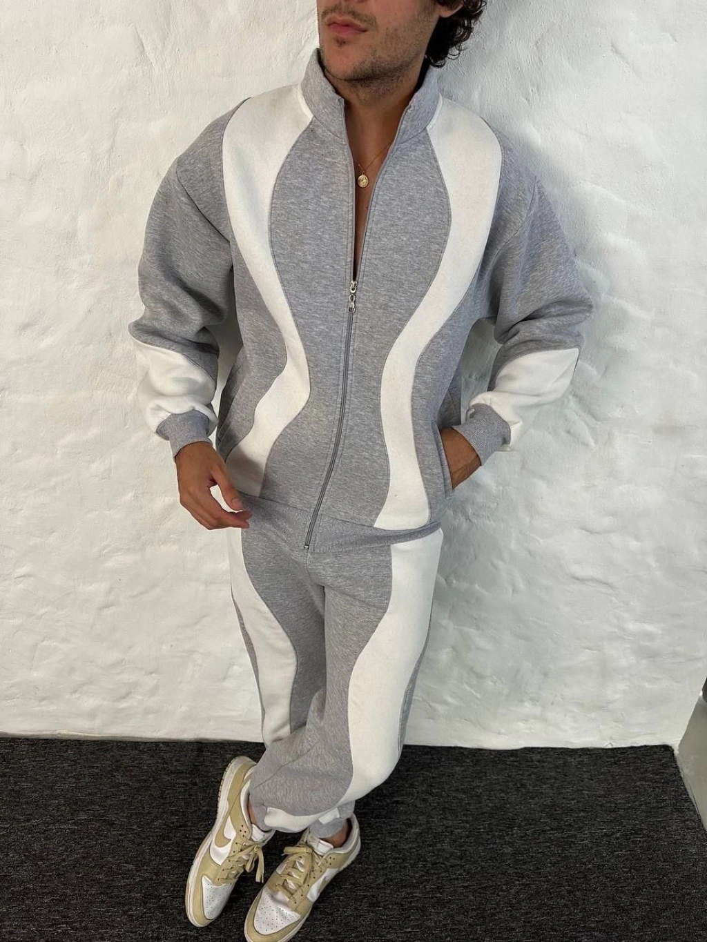 Erkek Premium Parçalı Eşofman Takım - Dik Yaka Fermuarlı Sweatshirt, - Gri