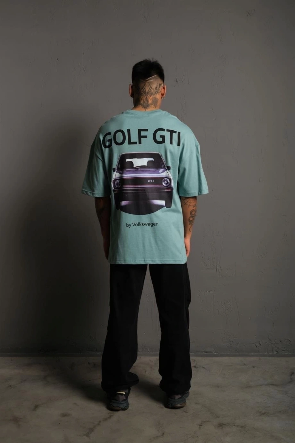 Erkek Oversize Baskılı Tişört – Golf Gtı Retro Araba Desenli, Ön & Arka Dijital Baskı, Sokak Modası Stil - Mint Yeşili