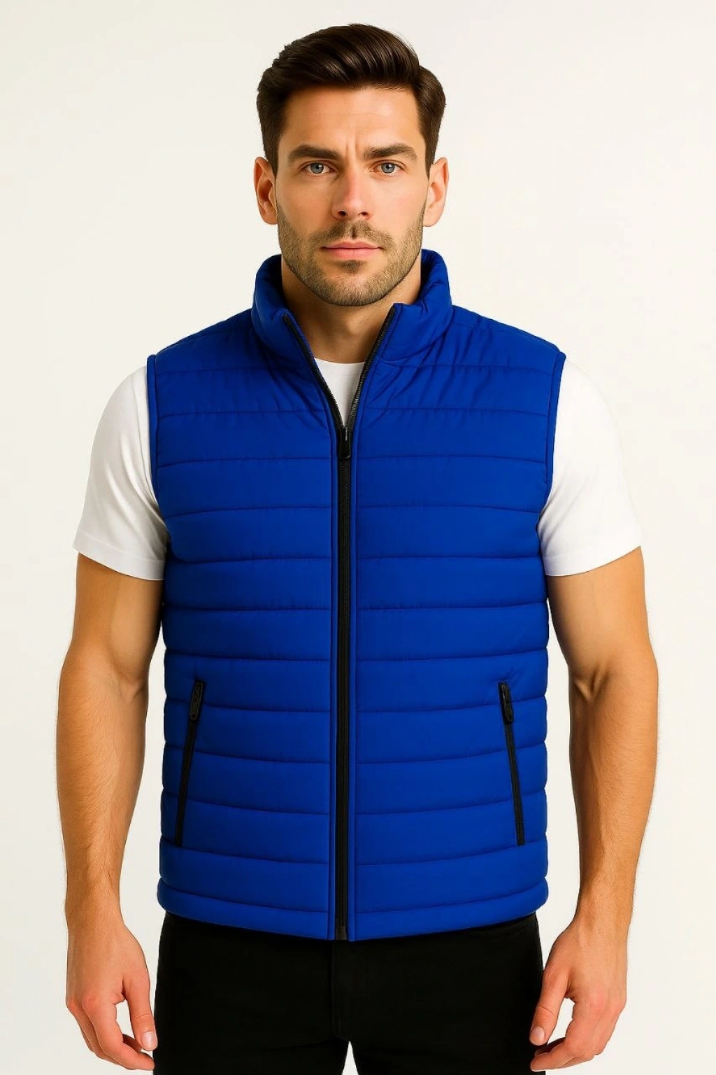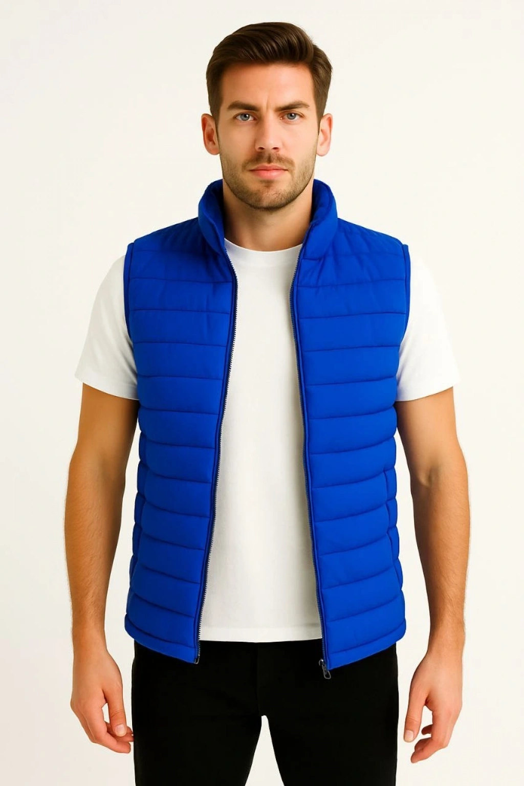 Erkek Şişme Fermuarlı Yelek Su itici Kapitone Astarlı Kumaş Cepli Hafif Kışlık Spor Rahat Kalıp - Siyah