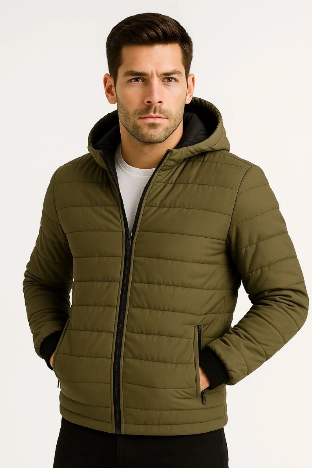 ERKEK BOMBER MONT CEKET – SU İTİCİ KUMAŞ, KAPİTONE ASTARLI, FERMUARLI, KIŞLIK - HAKİ