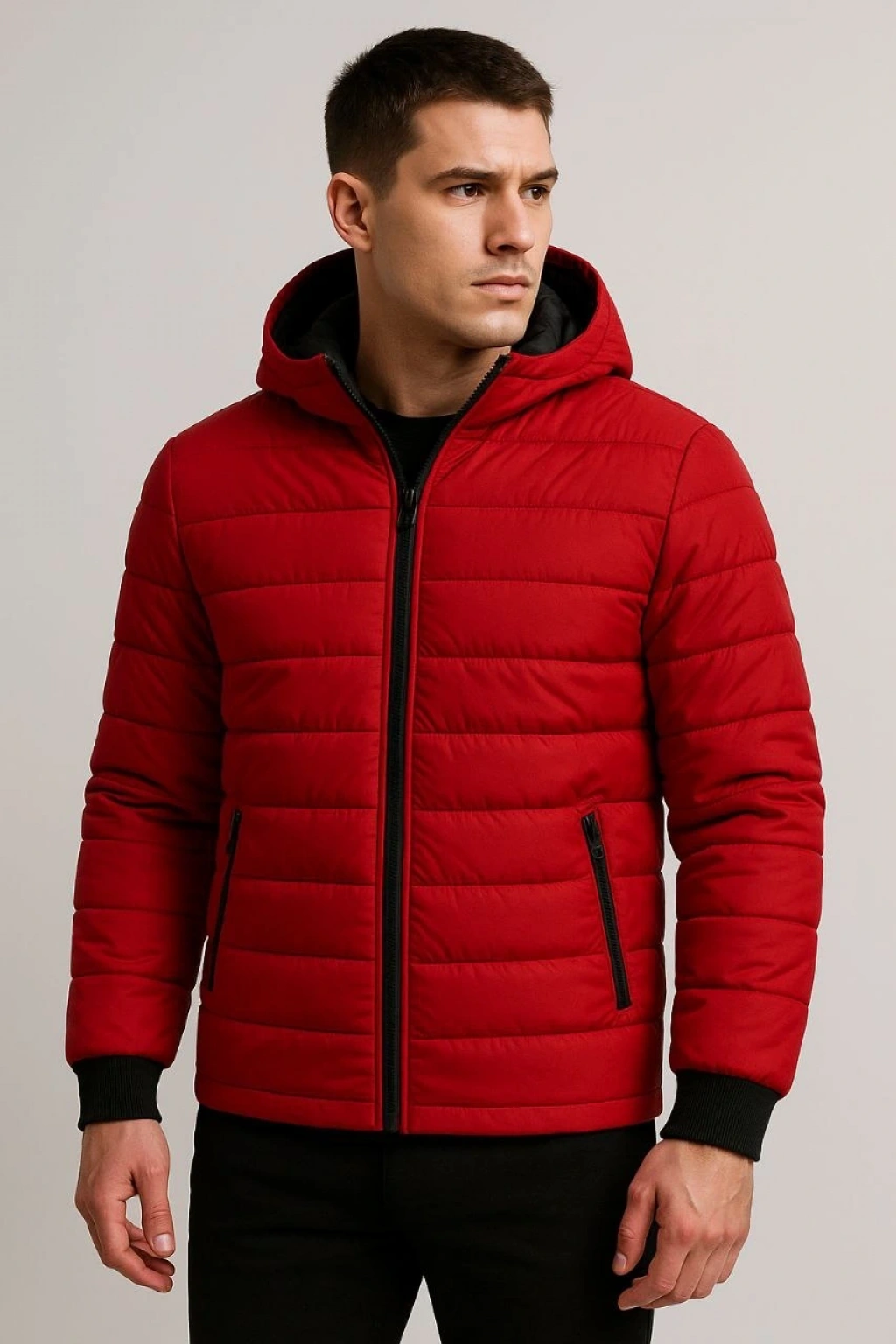ERKEK BOMBER MONT CEKET – SU İTİCİ KUMAŞ, KAPİTONE ASTARLI, FERMUARLI, KIŞLIK - KIRMIZI