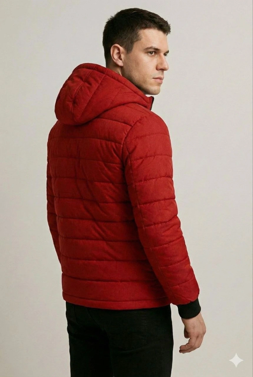 ERKEK ŞİŞME KAPÜŞONLU FERMUARLI MONT SU İTİCİ KAPİTONE ASTARLI KUMAŞ CEPLİ KIŞLIK RAHAT KALIP - BORDO