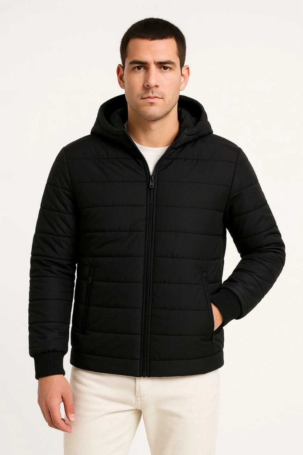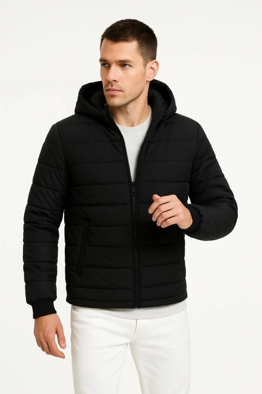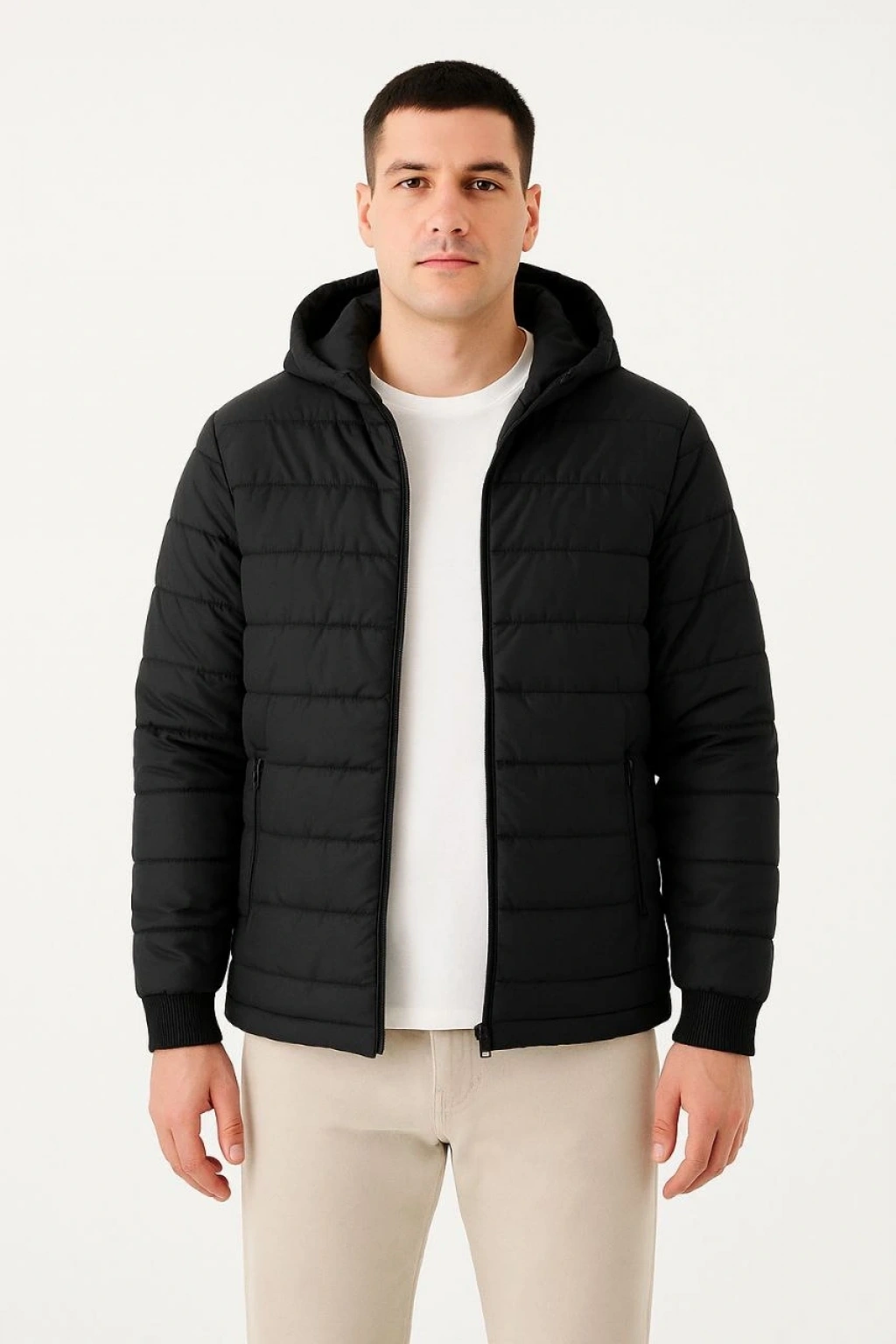 ERKEK BOMBER MONT CEKET – SU İTİCİ KUMAŞ, KAPİTONE ASTARLI, FERMUARLI, KIŞLIK - SİYAH