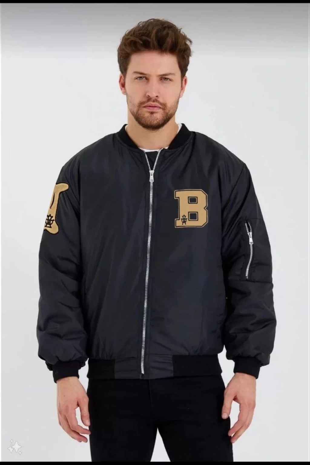 ERKEK SİYAH BOMBER MONT – FERMUARLI, CEPLİ, KAPİTONE ASTARLI, GÖĞÜS BASKILI TASARIM GÜNLÜK RAHAT CEKET - SİYAH
