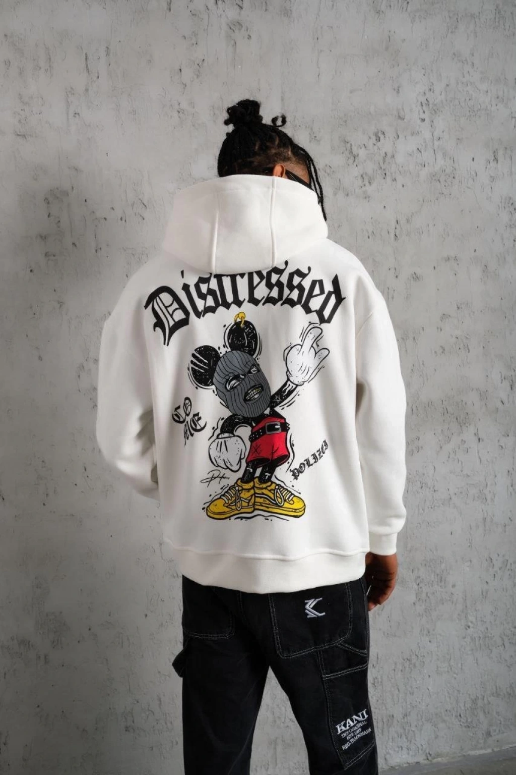 ERKEK OVERSİZE SWEATSHİRT – BEYAZ RENK | ÖN VE SIRT BASKILI, ÜÇ İPLİK İÇİ PAMUKLU KUMAŞ, RAHAT KALIP, RİBANALI KIŞLIK SWEAT | WİNAGAİN POLİZEİ SERİSİ - BEYAZ