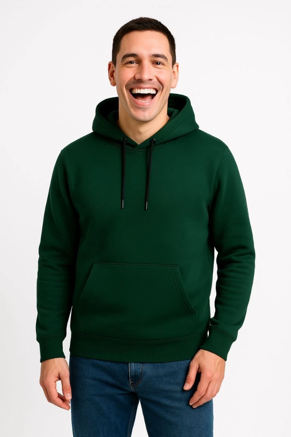 Erkek Oversize Üç İplik Kapüşonlu Sweatshirt – Beyaz Ön Baskılı, Kanguru Cepli, Rahat Kalıp, İçi Pamuklu Model