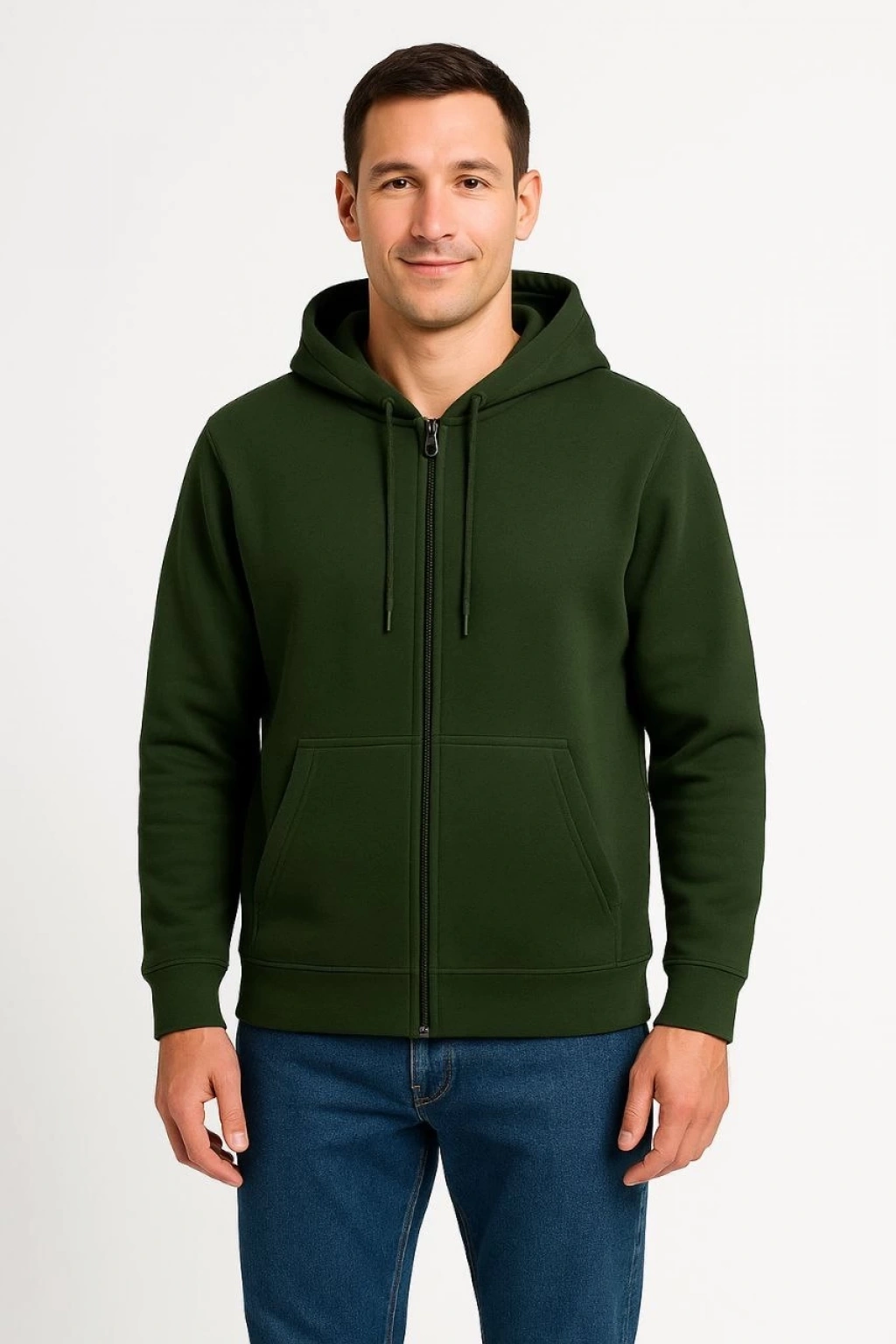 Erkek Oversize Üç İplik Kapüşonlu Sweatshirt – Beyaz Ön Baskılı, Kanguru Cepli, Rahat Kalıp, İçi Pamuklu Model