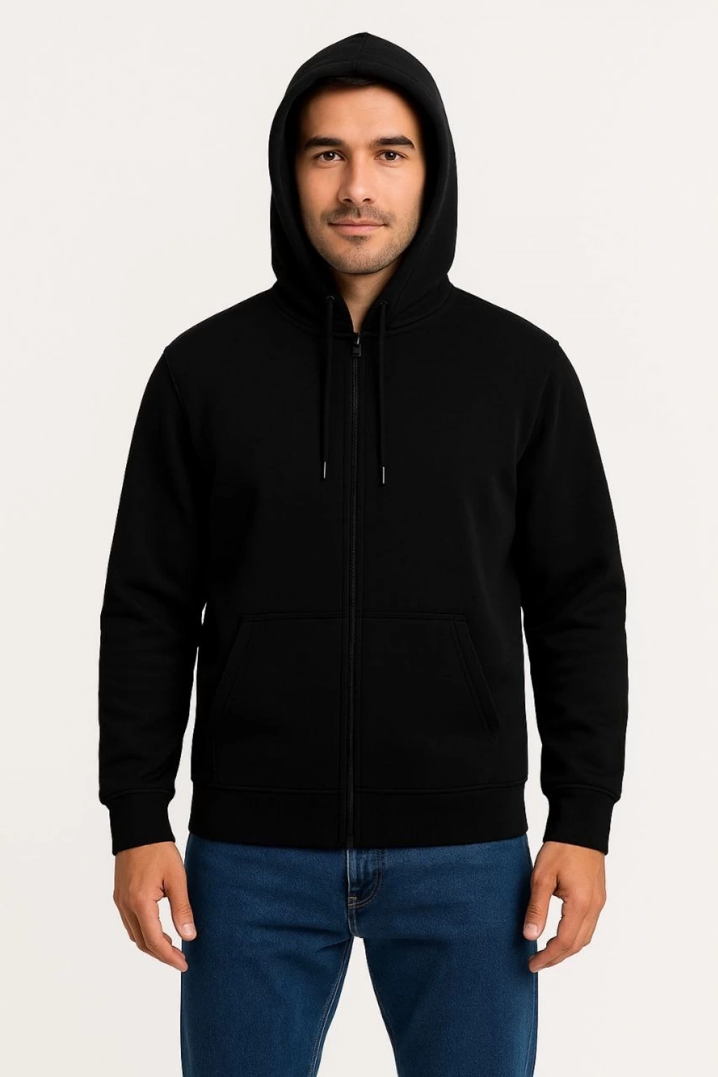 Samuray ZIP Fermuarlı Kapüşonlu SweatShirt- Siyah