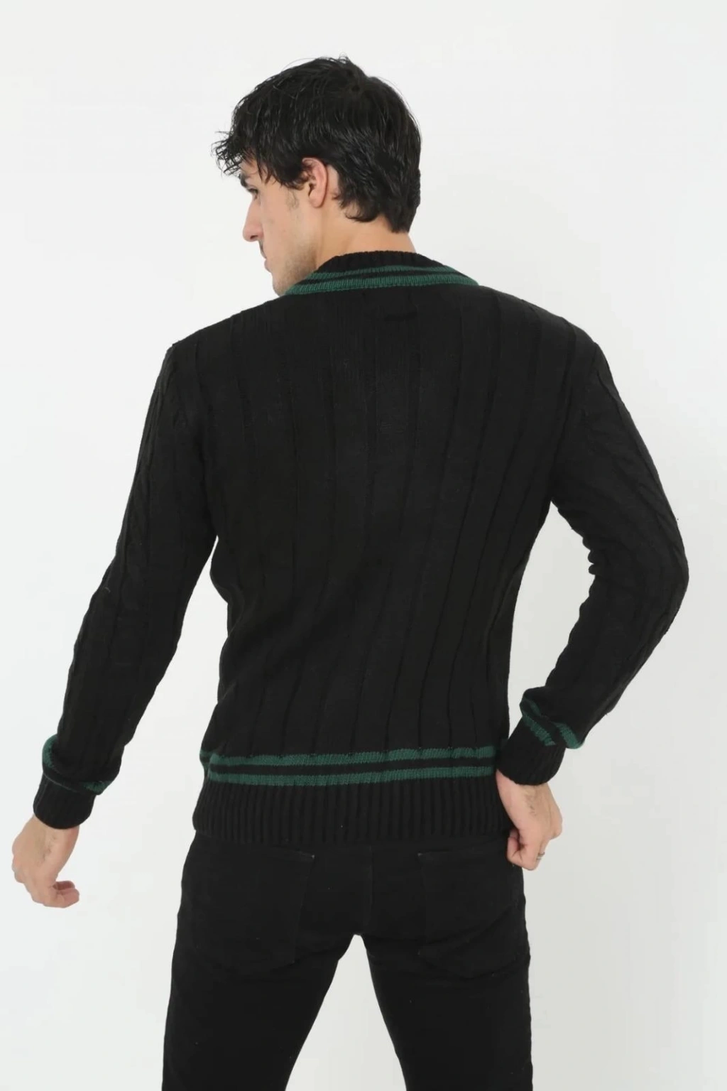 Erkek Tam Fermuarlı Triko Hırka - Siyah
