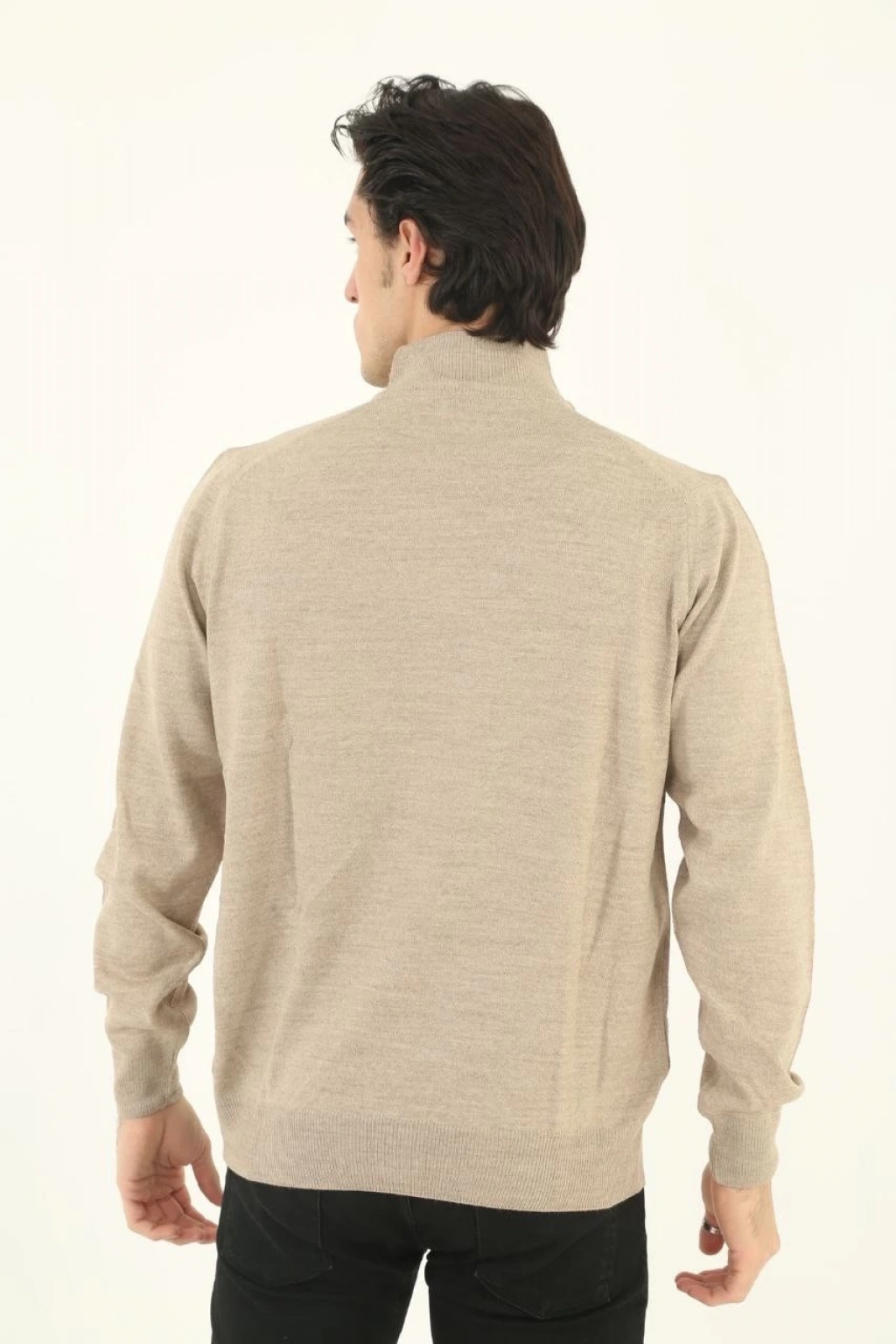 Erkek Yarım Boğaz Triko Kazak yumuşak dokulu Pamuklu ince Dokuma, uzun kollu Rahat Regular kalıp - Füme