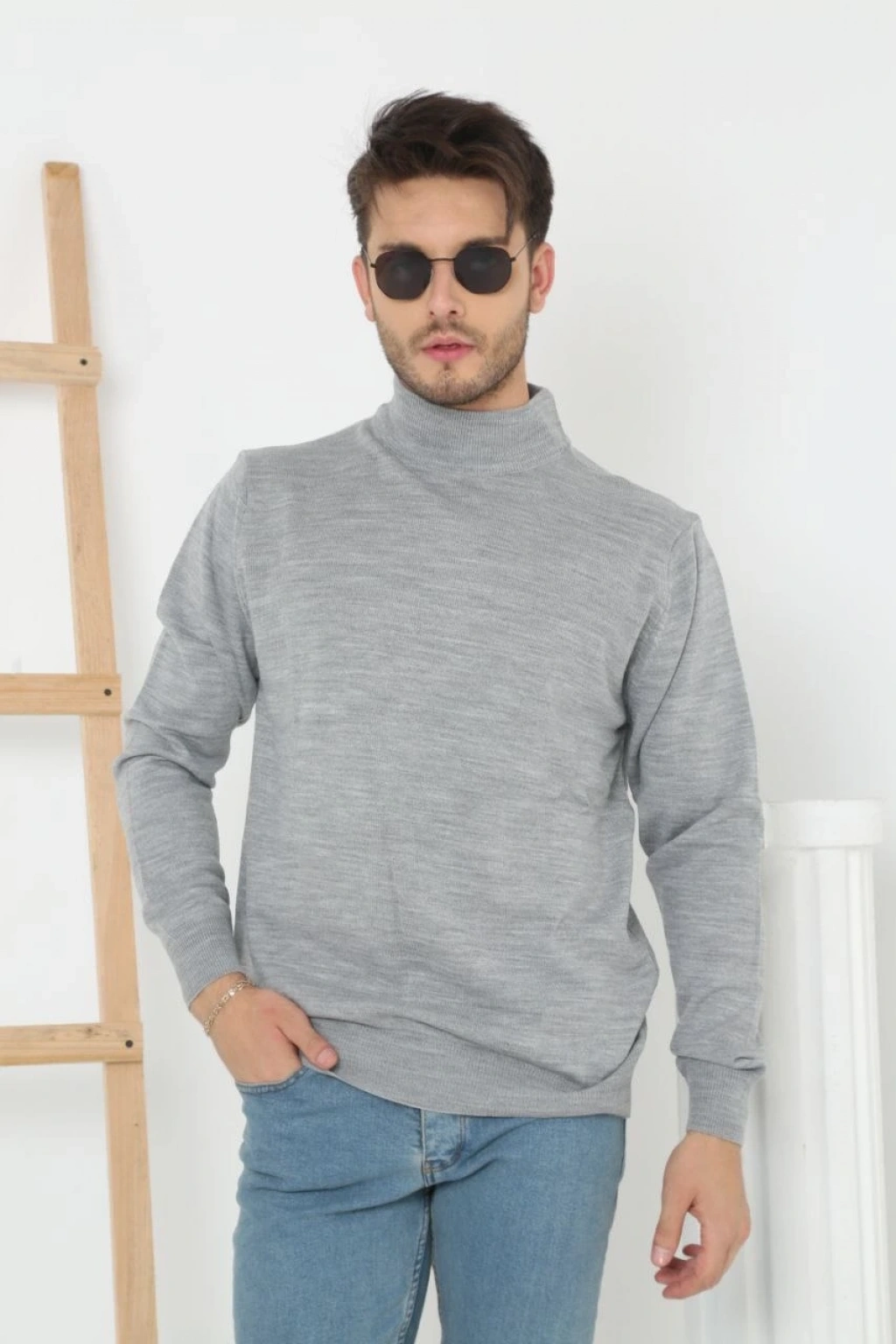 Erkek Fitilli Triko Kazak 3'lÜ Set Gri Haki Siyah Regular Balıkcı Yaka Tam Boğazlı Triko Seti Modeli Kazak