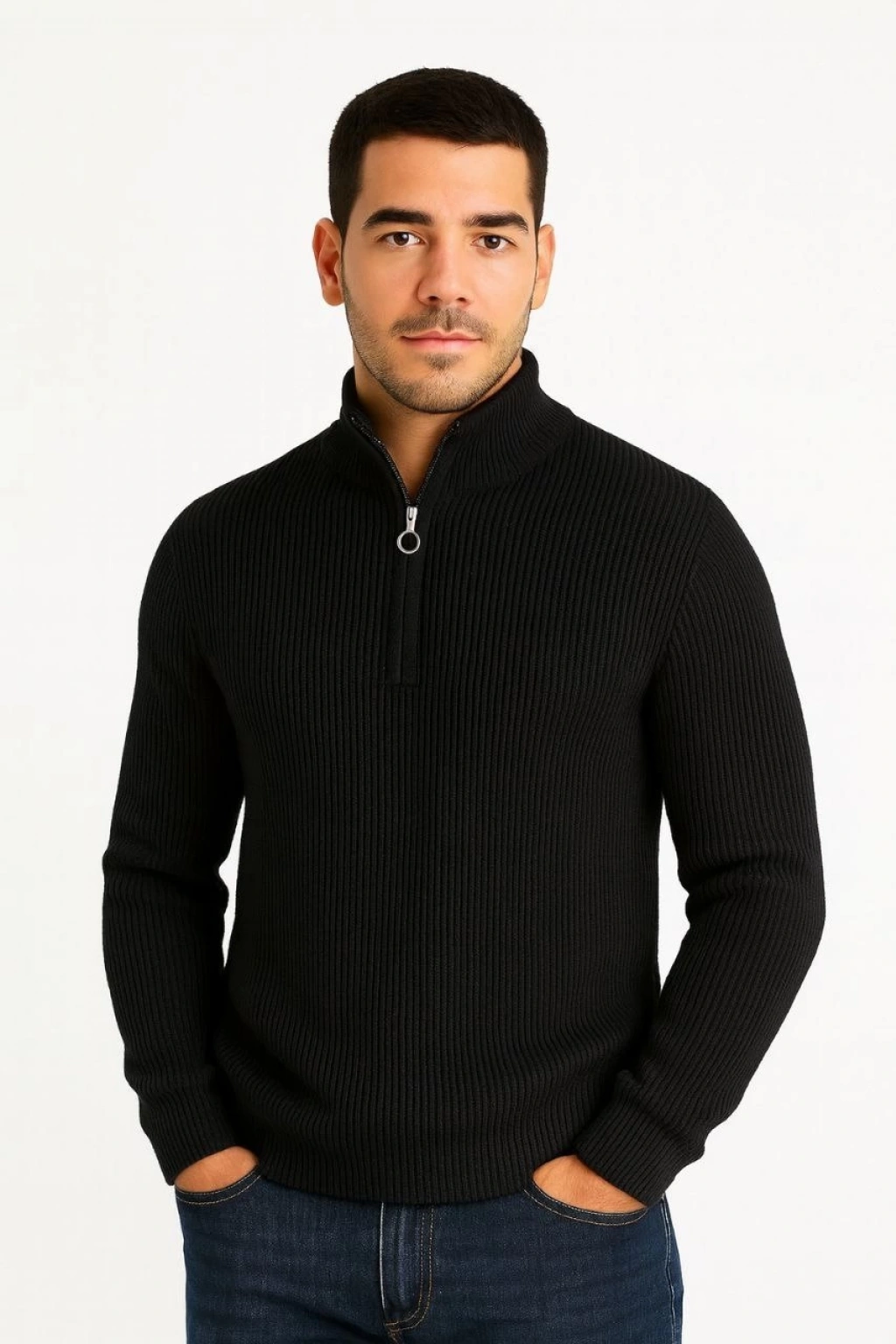Erkek Yarım Boğaz Triko Kazak yumuşak dokulu Pamuklu ince Dokuma, uzun kollu Rahat Regular kalıp - Siyah