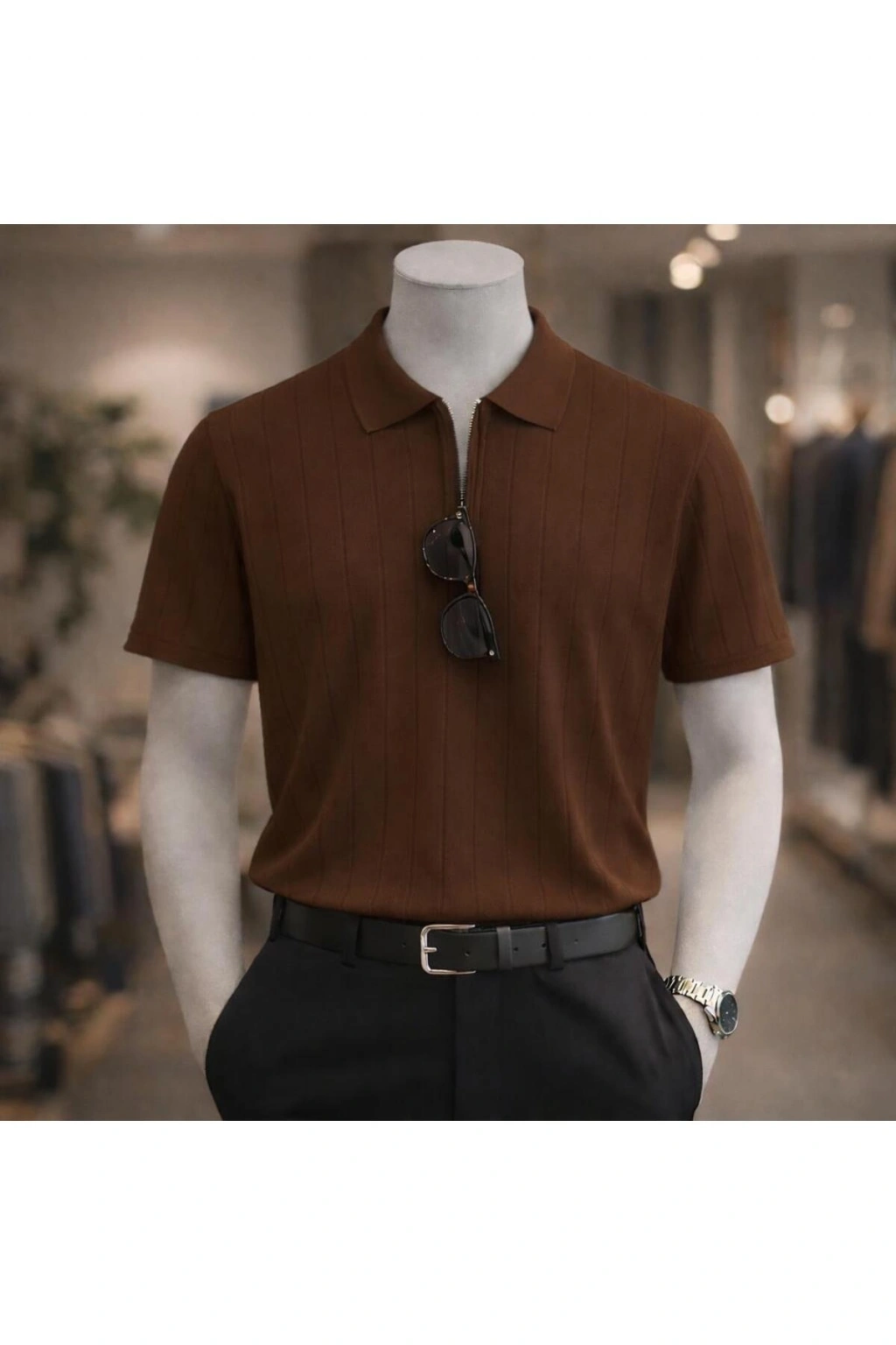 Erkek Yazlık Kısa Kollu Polyemid Yüksek Kalite Düz Yarım Fermuarlı A Kalite Tişört / T-shirt