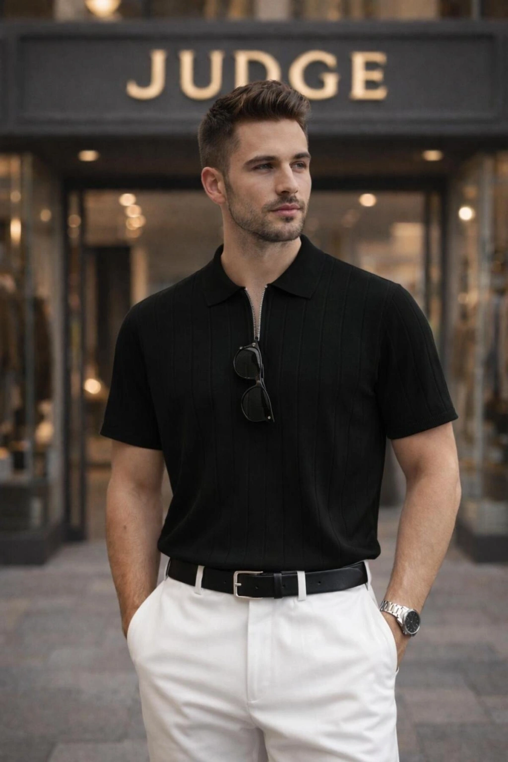Erkek Yazlık Kısa Kollu Polyemid Yüksek Kalite Düz Yarım Fermuarlı A Kalite Tişört / T-shirt