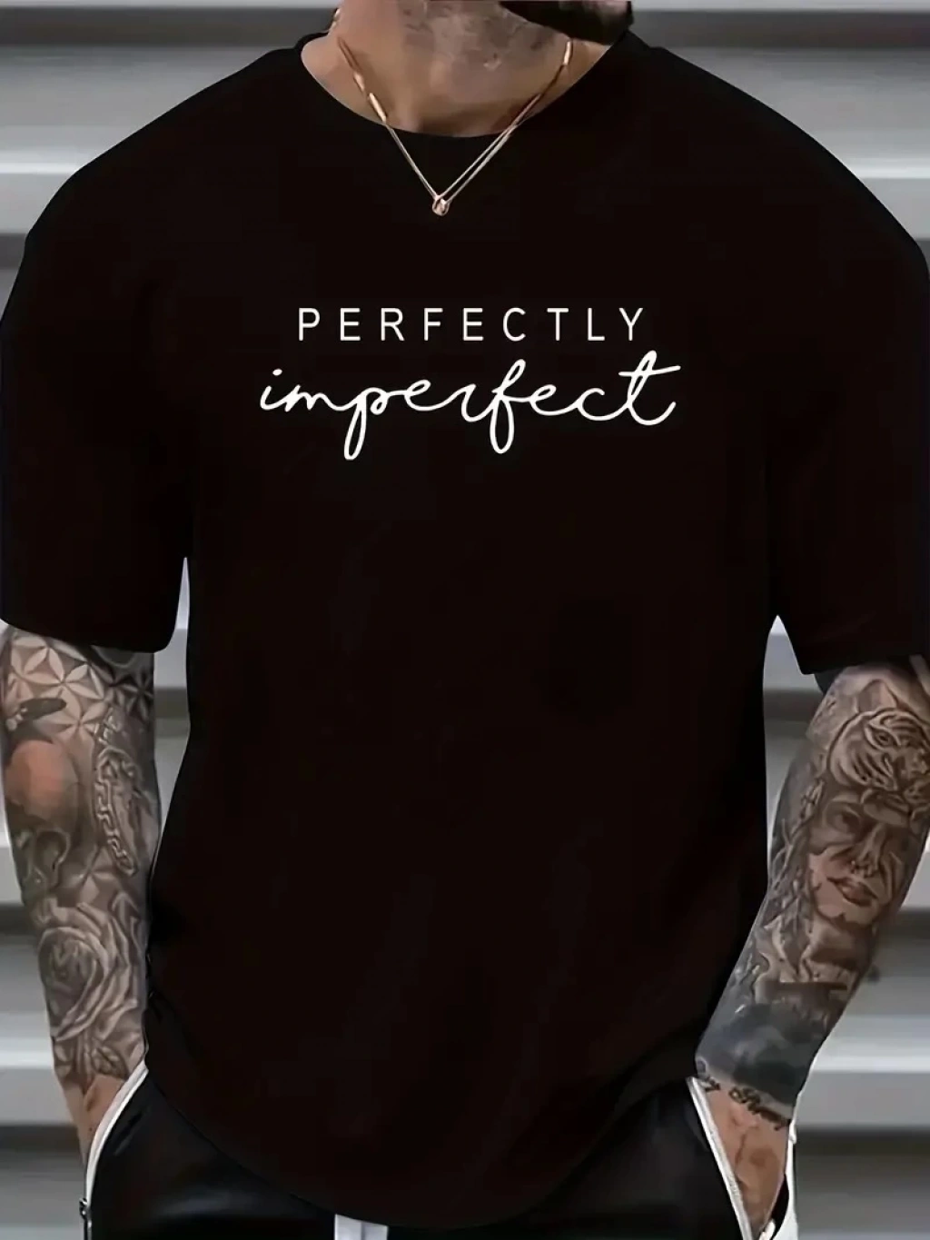 Eşsiz Baskı Tasarımlı Şık Büyük Beden Erkek Tişörtü - Rahat Polyester, Makinede Yıkanabilir, Yuvarlak Yaka - Her Mevsim İçin Mükemmel - Siyah