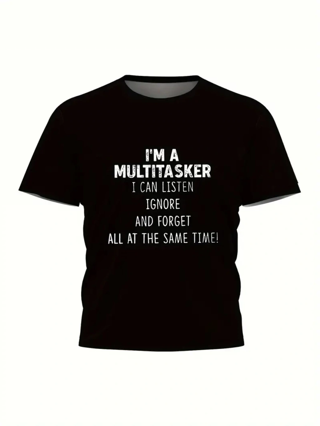 Büyük Beden Erkek "Whatever" Baskılı Tişört, Oversize Erkekler İçin Yaz Modası Kısa Kollu Tişörtler - Siyah
