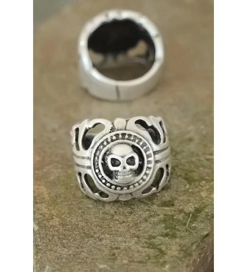 Havalı tarzınızı Eskitme Gümüş Renk Metal Kuru Kafa Tasarım Ayarlamalı Erkek Yüzük ile detaylandırmaya ne dersiniz?