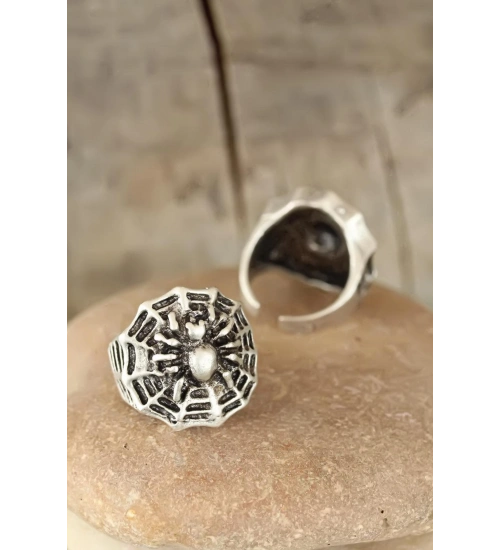 Yeni sezon tasarım Eskitme Gümüş Renk Örümcek Figürlü Erkek Ayarlamalı Yüzük