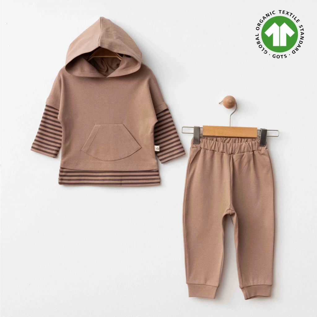 9-12-18-24 Ay Pohh Desenli Uzun Kollu Sweat 2Li Kız Erkek Bebek Takımı Krem