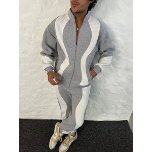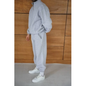 ERKEK PREMİUM PARÇALI EŞOFMAN TAKIM - DİK YAKA FERMUARLI SWEATSHİRT, - GRİ