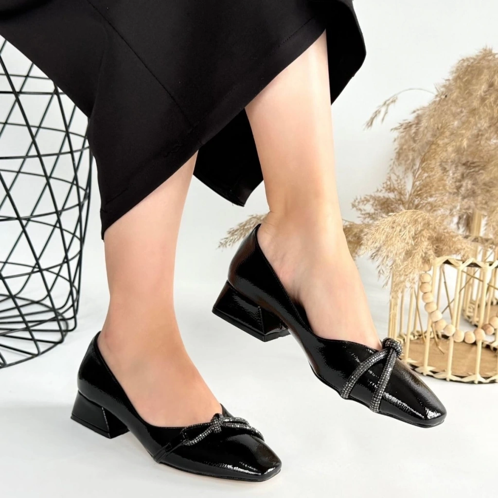Motya Siyah Rugan Topuklu Ayakkabı