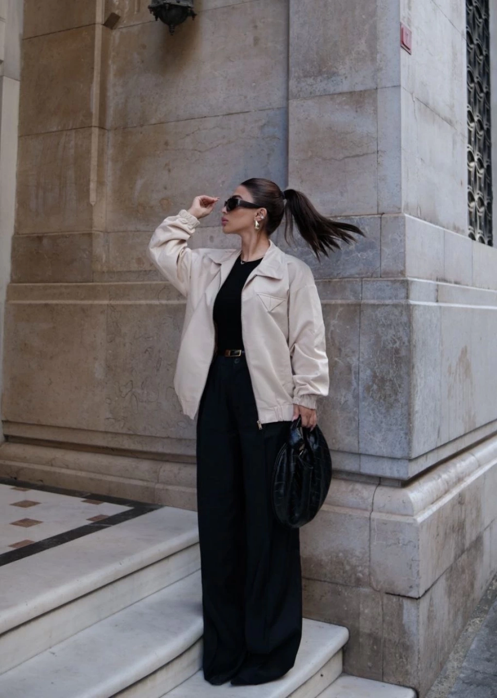 Kadın Sırt ve Kol Parça Baskılı Bomber Ceket - Siyah