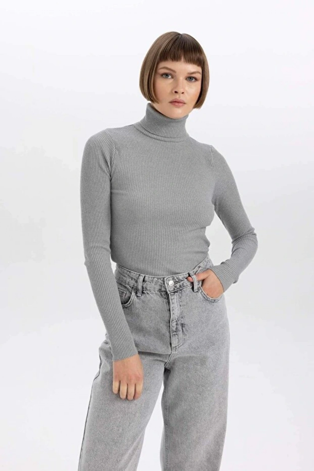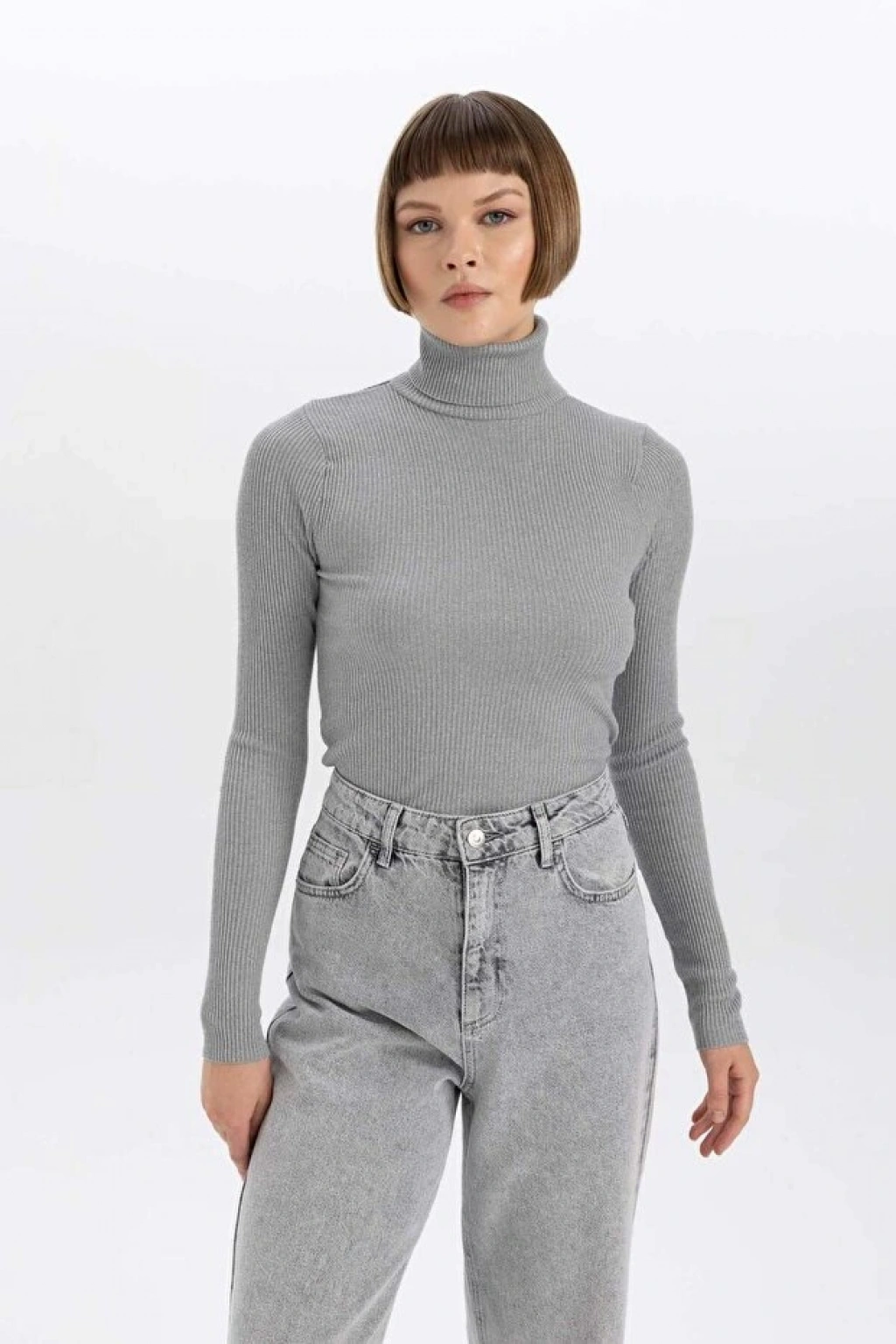 • DeFacto Kadın Fitted Balıkçı Yaka Ribana Kazak