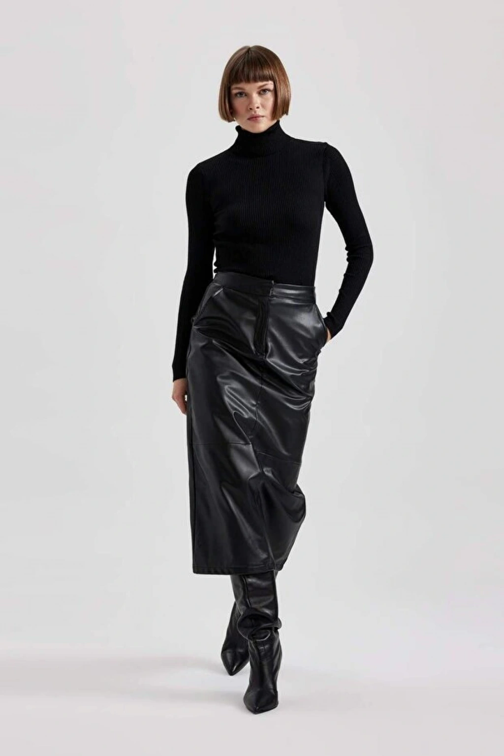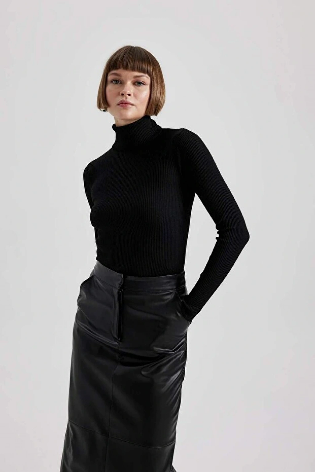 Şık v yaka modeli ve fitted dar rahat kalıbı ile tarz moda severlerin dolabında mutlaka olması gereken, maxi etek, mini etek, yüksek belli jean pantolon, blazer ceket, dokuma pantolon, jean pantolon ve taytlarınızla rahatlıkla kullanabileceğiniz, hem günlük hem de klasik kıyafetlerinizle kombinleyebileceğiniz DeFacto Kadın Fitted Balıkçı Yaka Ribana Kazak. Poliester 100% Ürün Uzunluk Ölçüleri: XXL-57 cm Ürün Kodu: B2092AX23WN Manken Bilgileri Gri-GR436: Göğüs: 83 Boy: 1,71 Basen: 90 Bel: 62 Manken Bedeni Gri-GR436: S