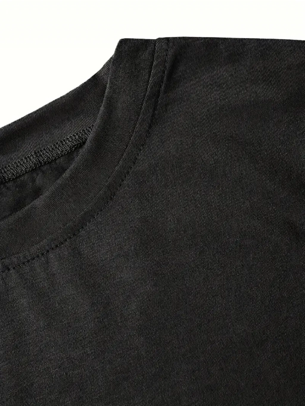 Rahat Bisiklet Yaka Tişört, Yaratıcı Karikatür Baskı - Yumuşak Polyester, Her Mevsim Giyilebilir- Siyah