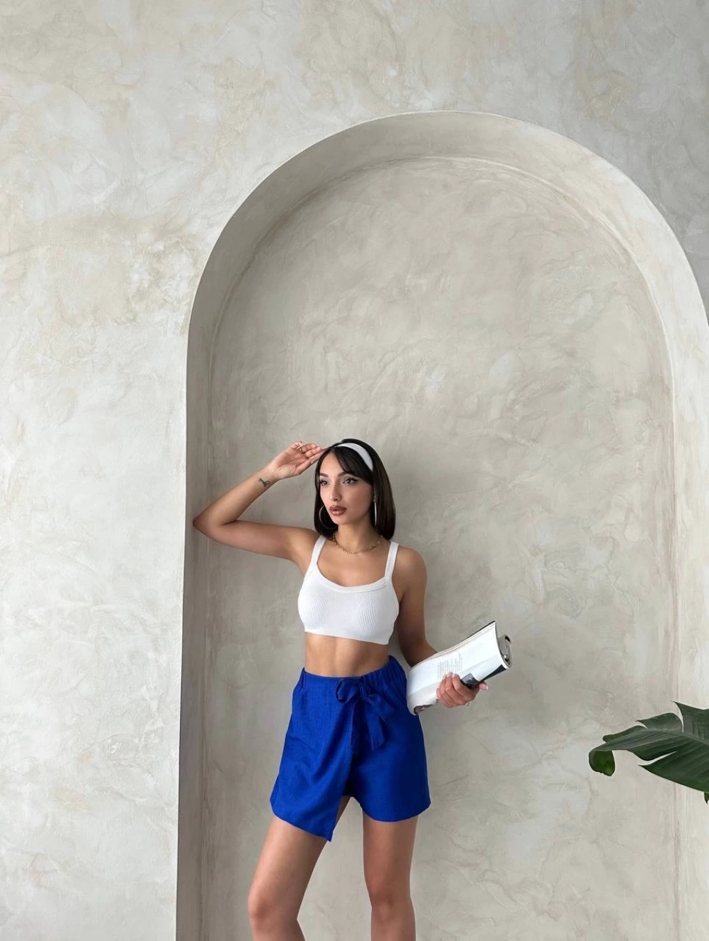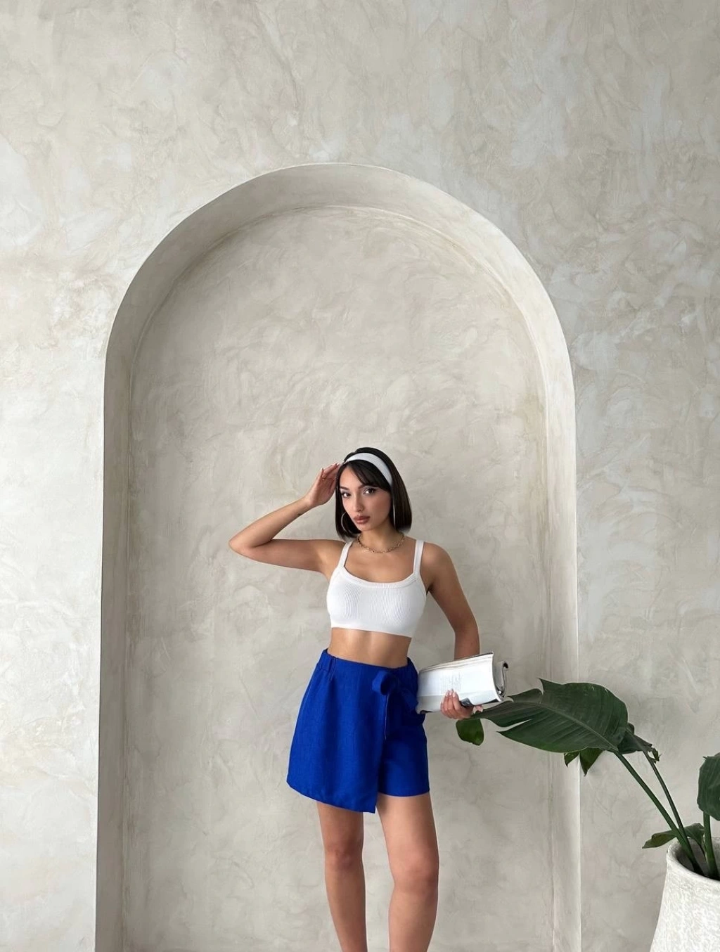 Müslin kumaş şort bağcıklı beyaz pt