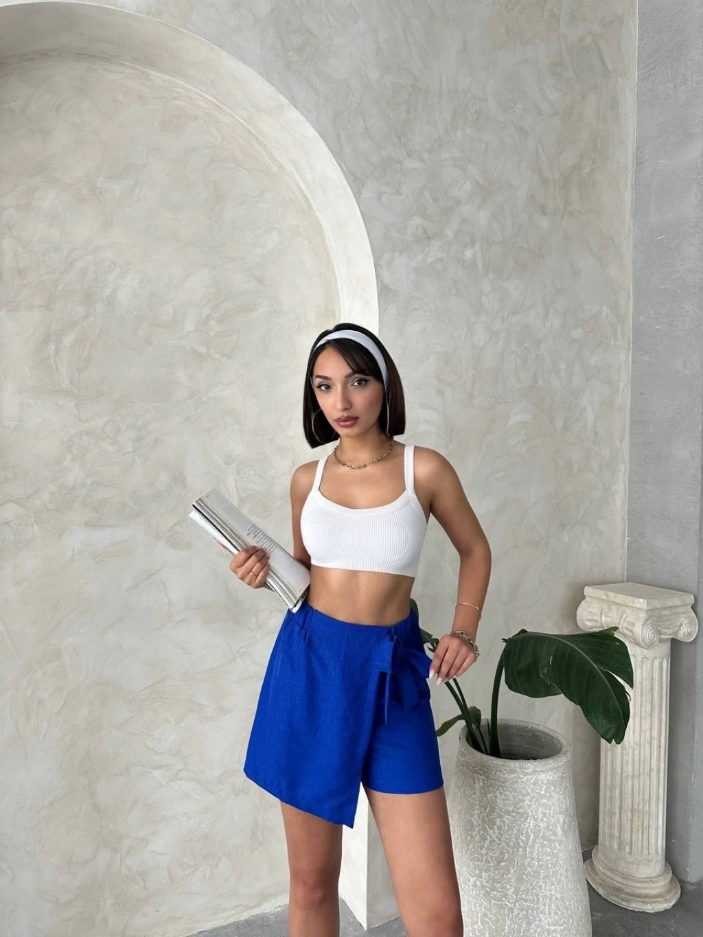 Müslin kumaş şort bağcıklı mavi pt